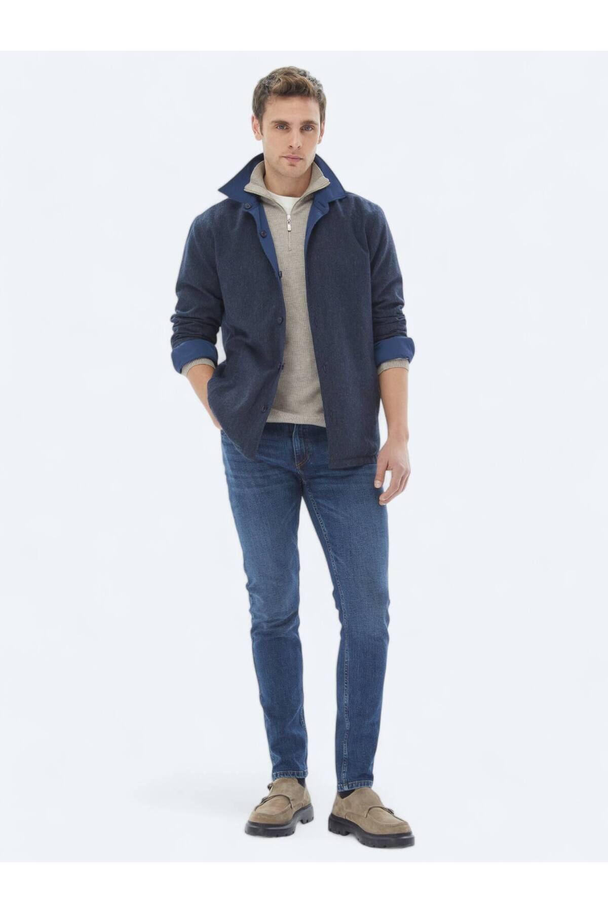 Lacivert Regular Fit Gömlek Yaka Casual Dokuma Mont Lacivert Regular Fit Gömlek Yaka Casual Dokuma Mont 49956 3XL