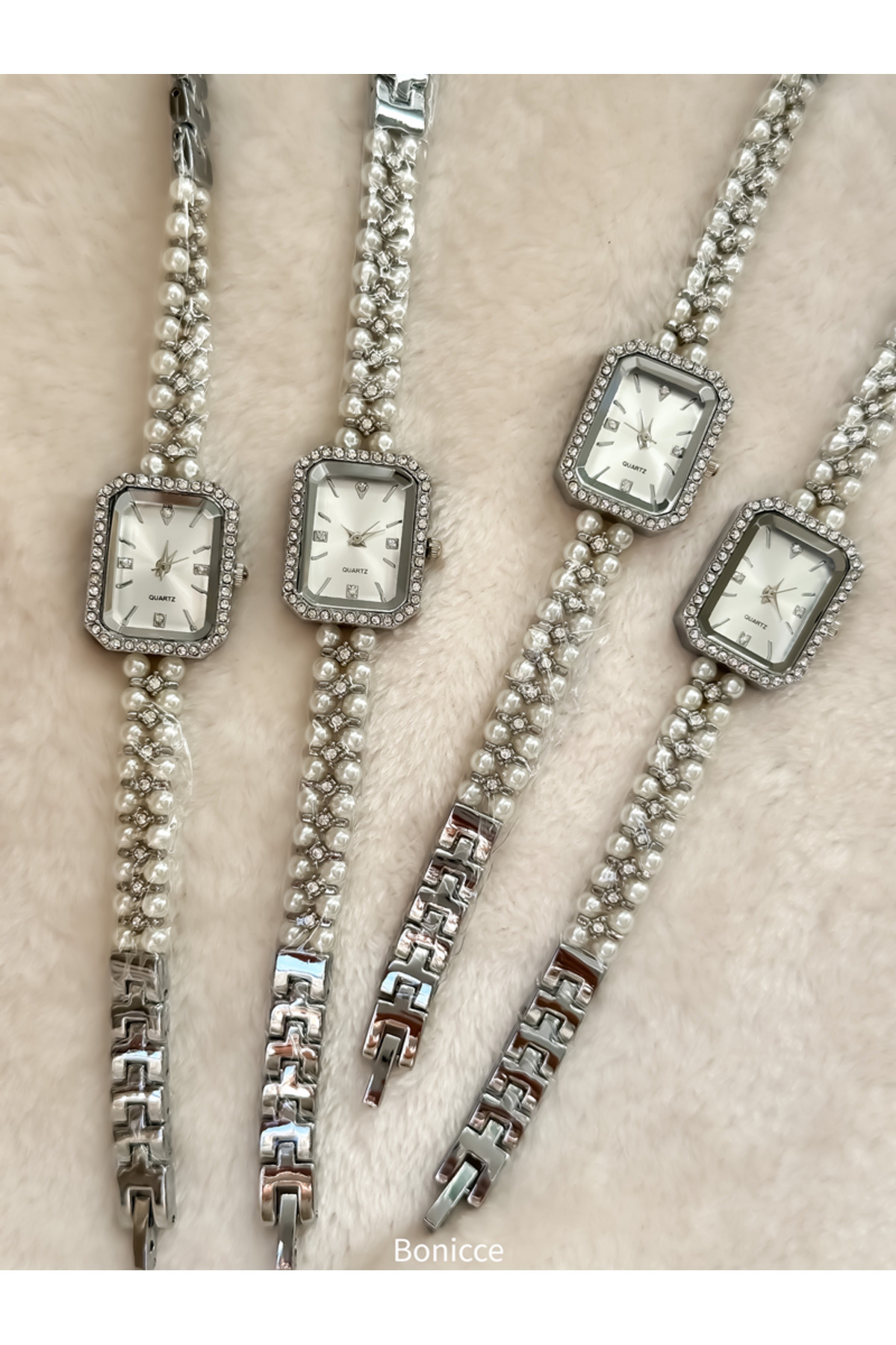 Özel Hediyelik Kutuda Retro Gümüş Renk Incili Kordon,dikdörtgen Köşeli Kasa Kadın Kol Saati Özel Hediyelik Kutuda Retro Gümüş Renk Incili Kordon,dikdörtgen Köşeli Kasa Kadın Kol Saati BNCBNCX1 تک سایز