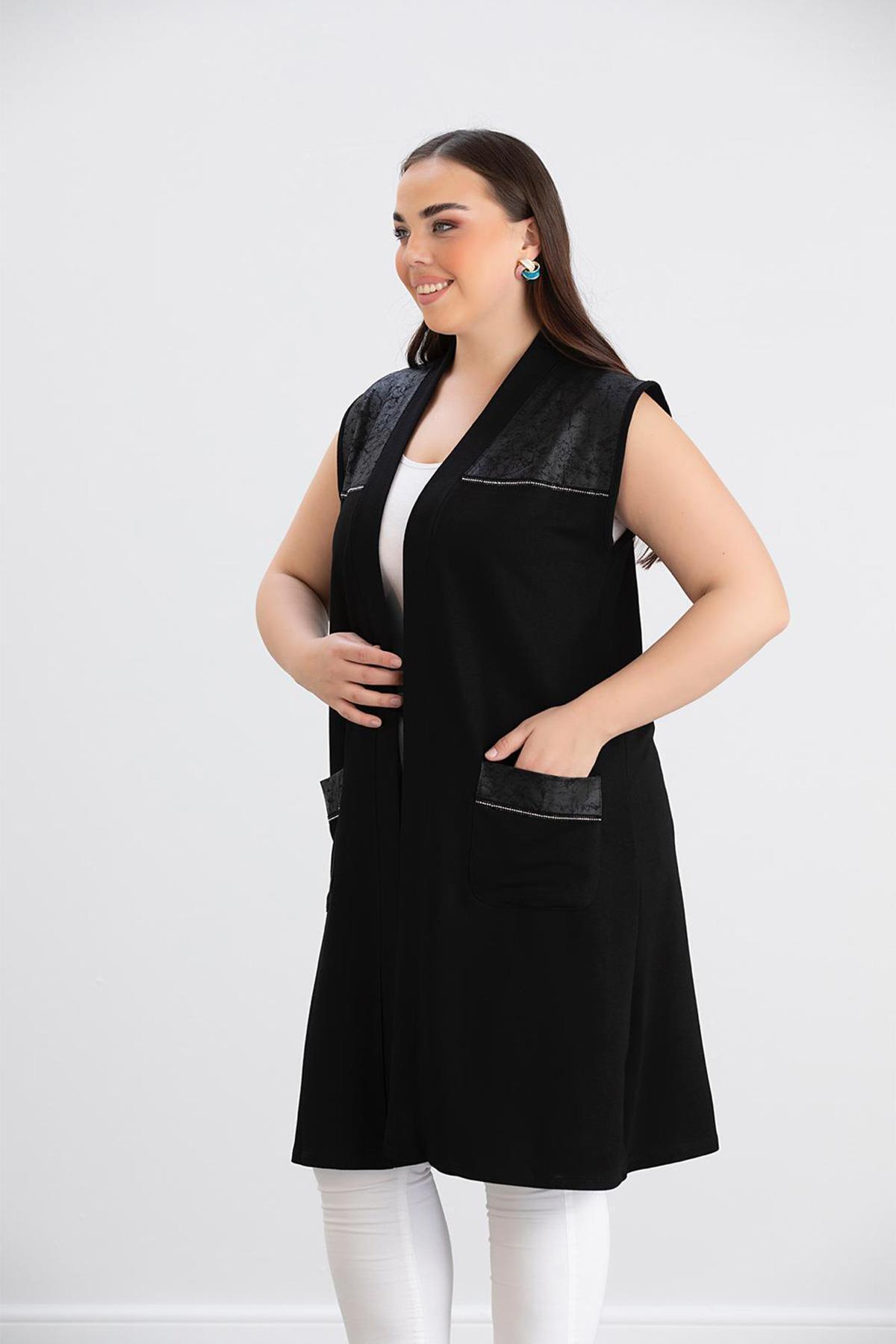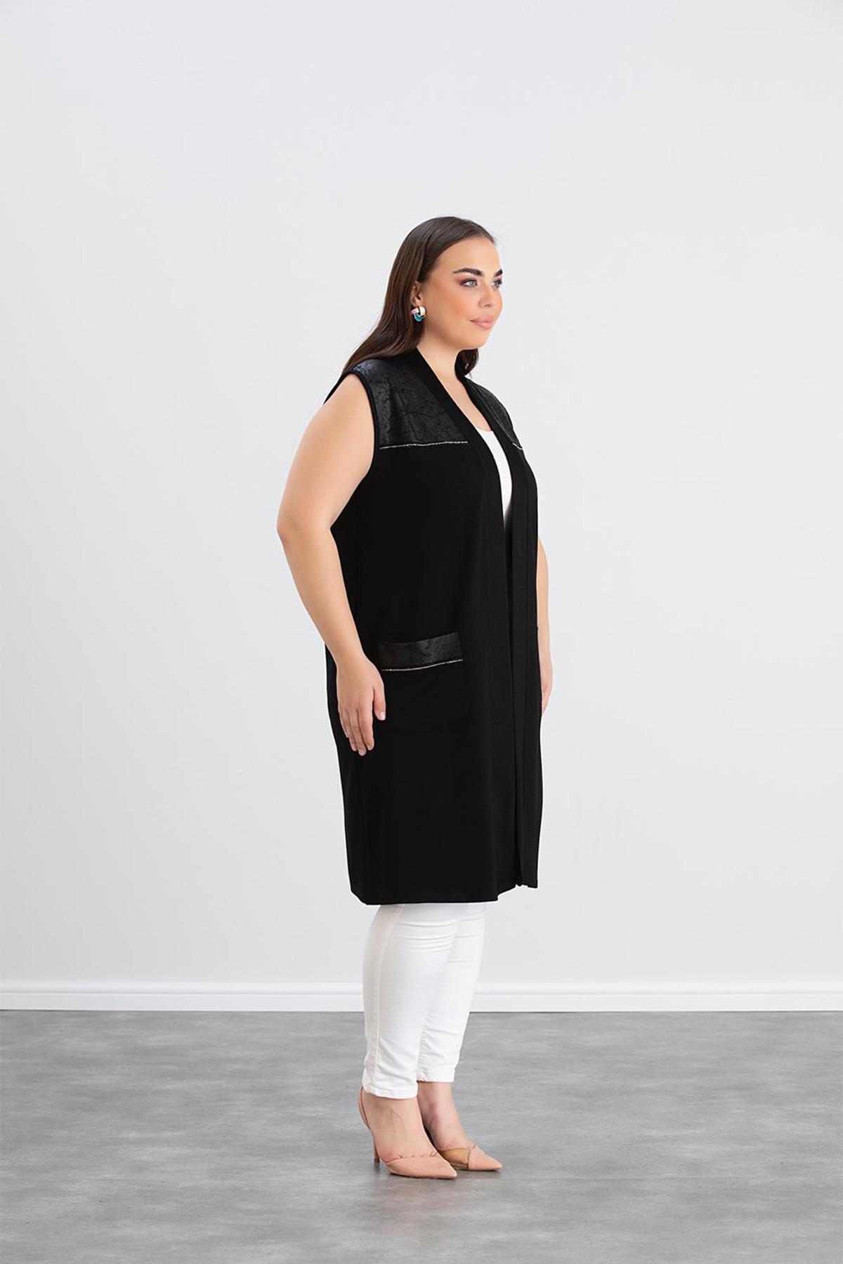 Wearon Kadın Ajda 2 İp Kristal Süs Deri ve Taşlı Cepli Siyah Yelek Wearon Kadın Ajda 2 İp Kristal Süs Deri ve Taşlı Cepli Siyah Yelek HMR01K4050 54