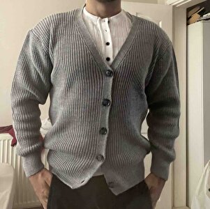 Erkek Regular Fit Düğmeli V Yaka Triko Hırka Erkek Regular Fit Düğmeli V Yaka Triko Hırka HRRK8193 XL