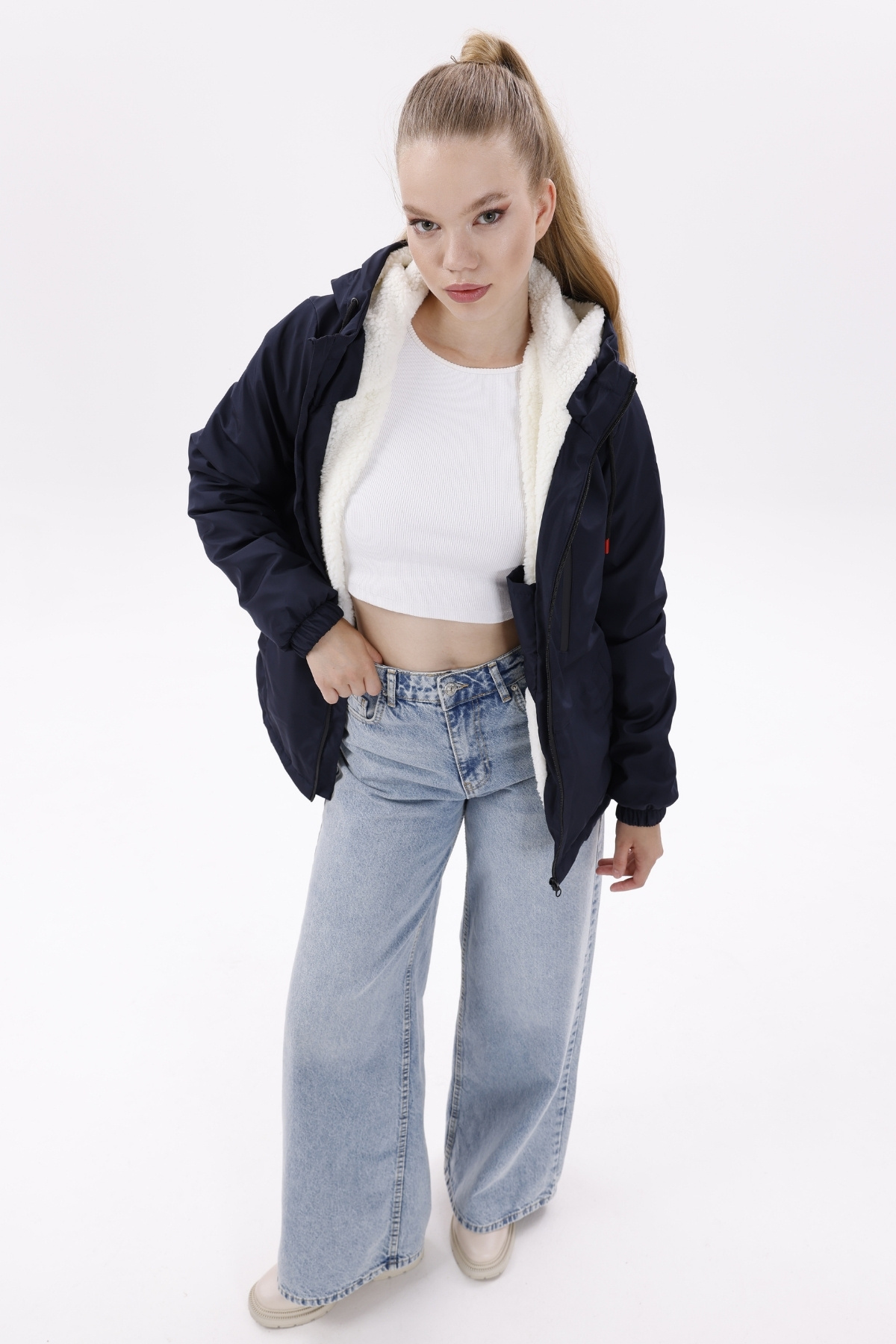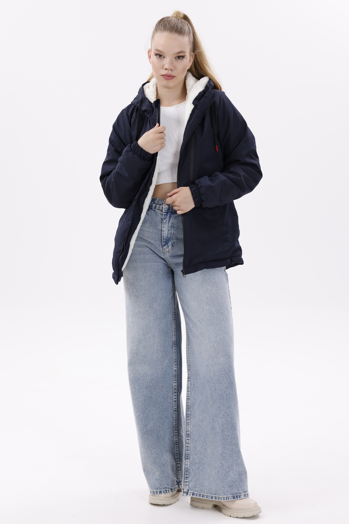 Kadın Lacivert Kürklü Su Ve Rüzgar Geçirmez Kapüşonlu Kışlık Mont & Kaban & Parka Kadın Lacivert Kürklü Su Ve Rüzgar Geçirmez Kapüşonlu Kışlık Mont & Kaban & Parka FMM-100-K 2XL