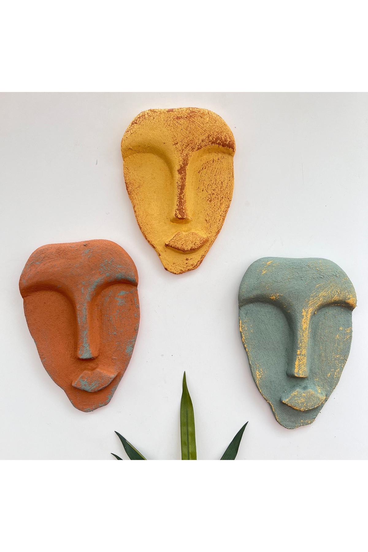 Özel Tasarım El Yapımı Heykel Soyut Yarım Yüz Maske 2'li Set, Duvar Dekor, Modern Ev ve Ofis Dekoru Özel Tasarım El Yapımı Heykel Soyut Yarım Yüz Maske 2'li Set, Duvar Dekor, Modern Ev ve Ofis Dekoru YARIMYÜZ 28 x 13