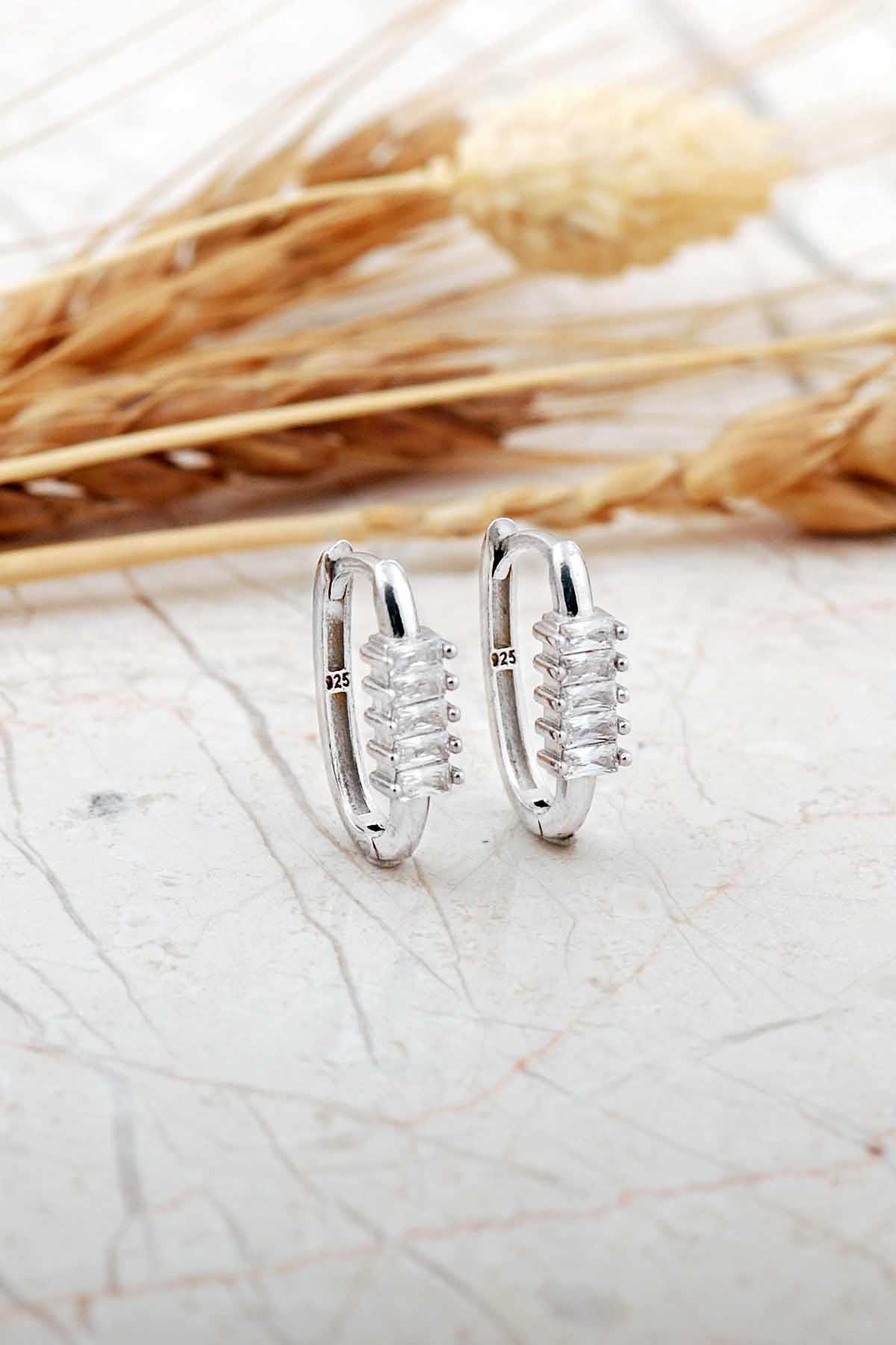 21 Mm Tasarım Baget Taşlı Rodyumlu Gümüş Halka Küpe 7168 21 Mm Tasarım Baget Taşlı Rodyumlu Gümüş Halka Küpe 7168 ME7168 تک سایز