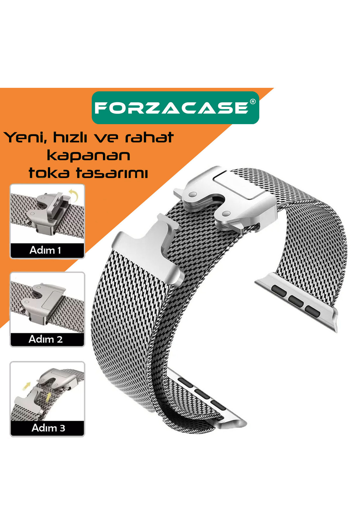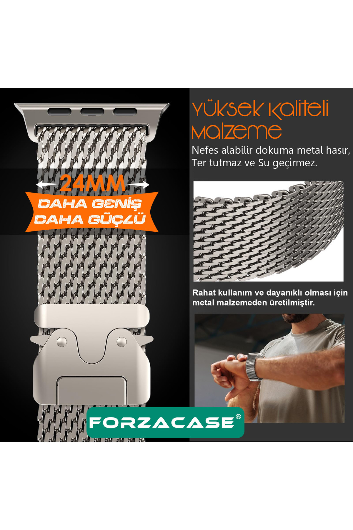 Apple Watch 10 Series 46mm ile uyumlu Mekanizmalı Metal Hasır Kordon Kayış - FC864 Apple Watch 10 Series 46mm ile uyumlu Mekanizmalı Metal Hasır Kordon Kayış - FC864 FC864-AP1046-S تک سایز