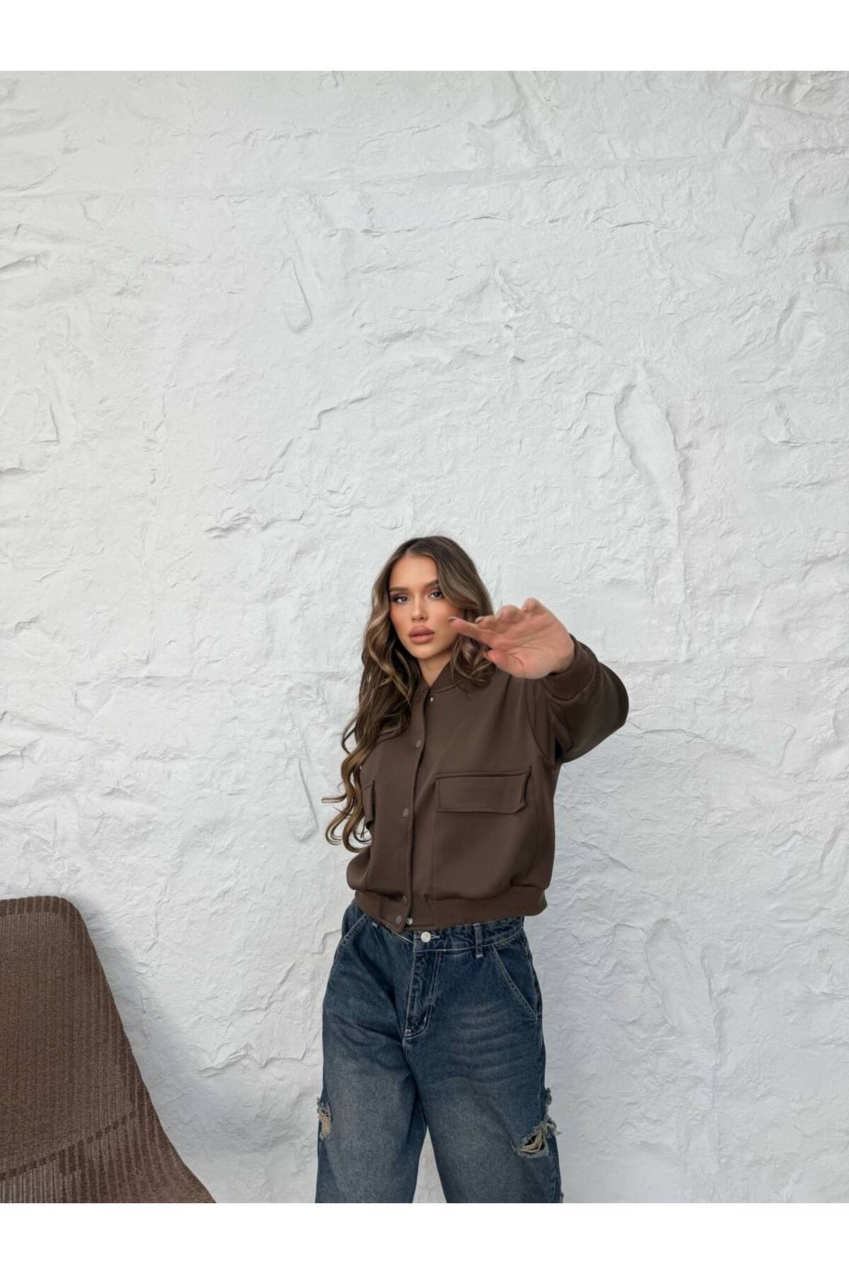 Kadın Scuba Kumaş Çift Cep Bomber Ceket Kadın Scuba Kumaş Çift Cep Bomber Ceket KCH18361836 L