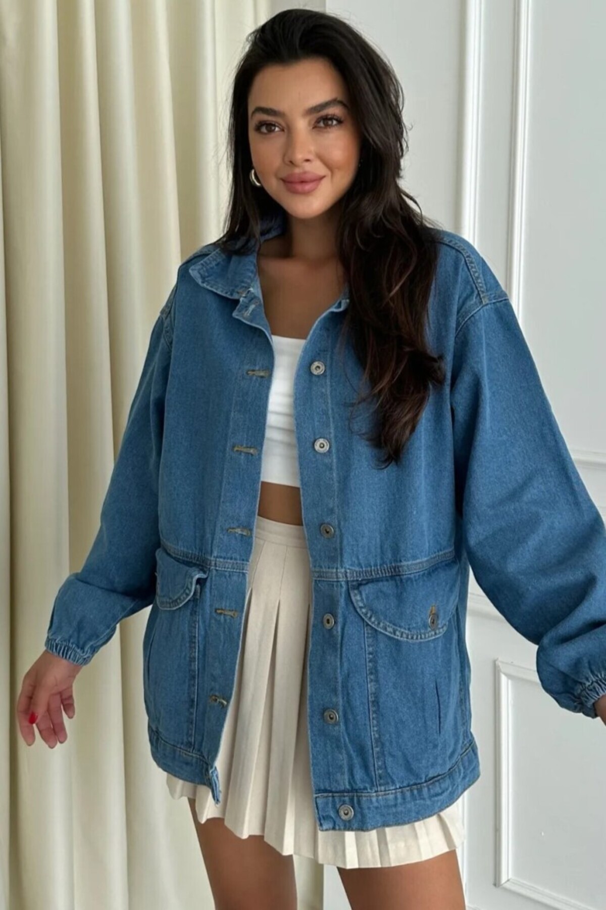 Açık Mavi Oversize Körüklü Kot Ceket Açık Mavi Oversize Körüklü Kot Ceket cek00 Standart
