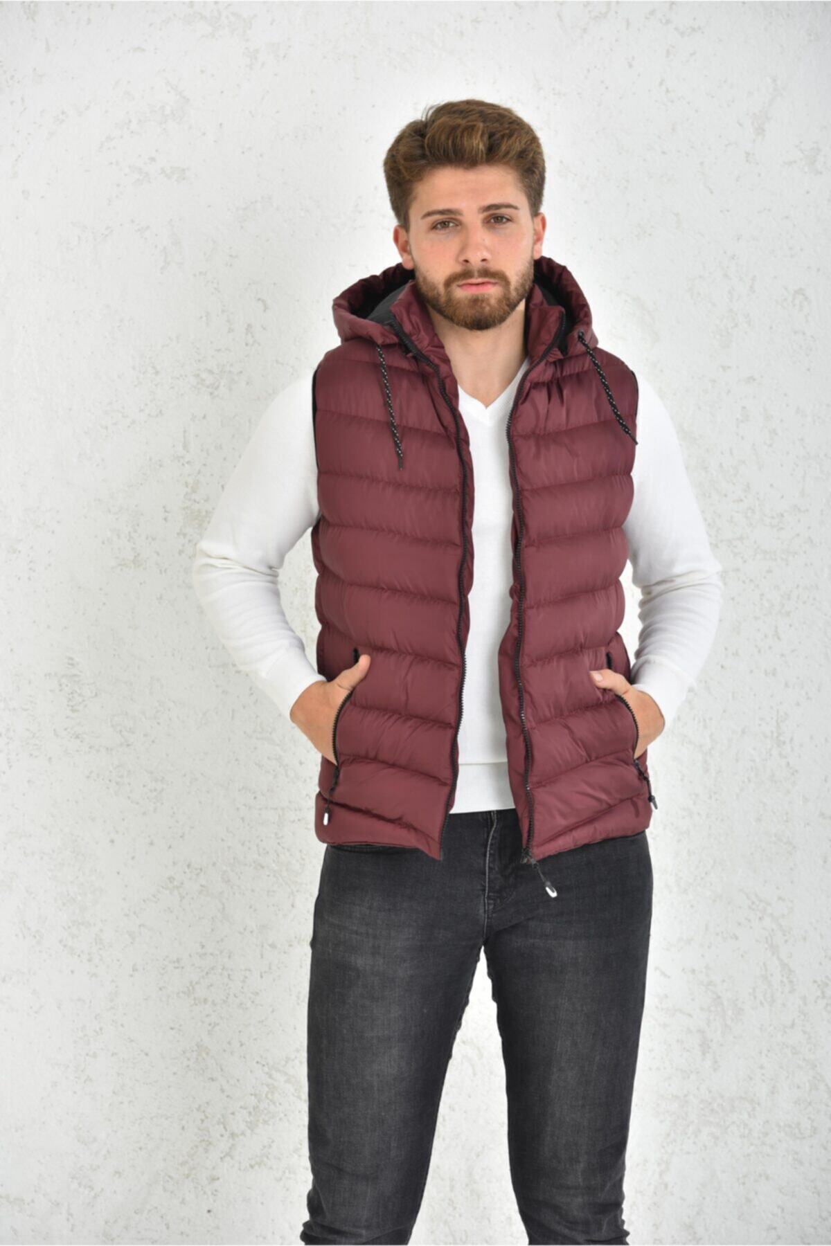 Erkek Kolsuz Fermuarlı Cepli Basic Bordo Şişme Yelek Erkek Kolsuz Fermuarlı Cepli Basic Bordo Şişme Yelek BYYSRYLK01 3XL