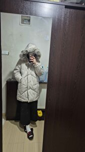 Uzun Kapitone Mont Kapüşonlu Suni Kürk Detaylı Cepli Uzun Kapitone Mont Kapüşonlu Suni Kürk Detaylı Cepli 5WAK00030EW 44