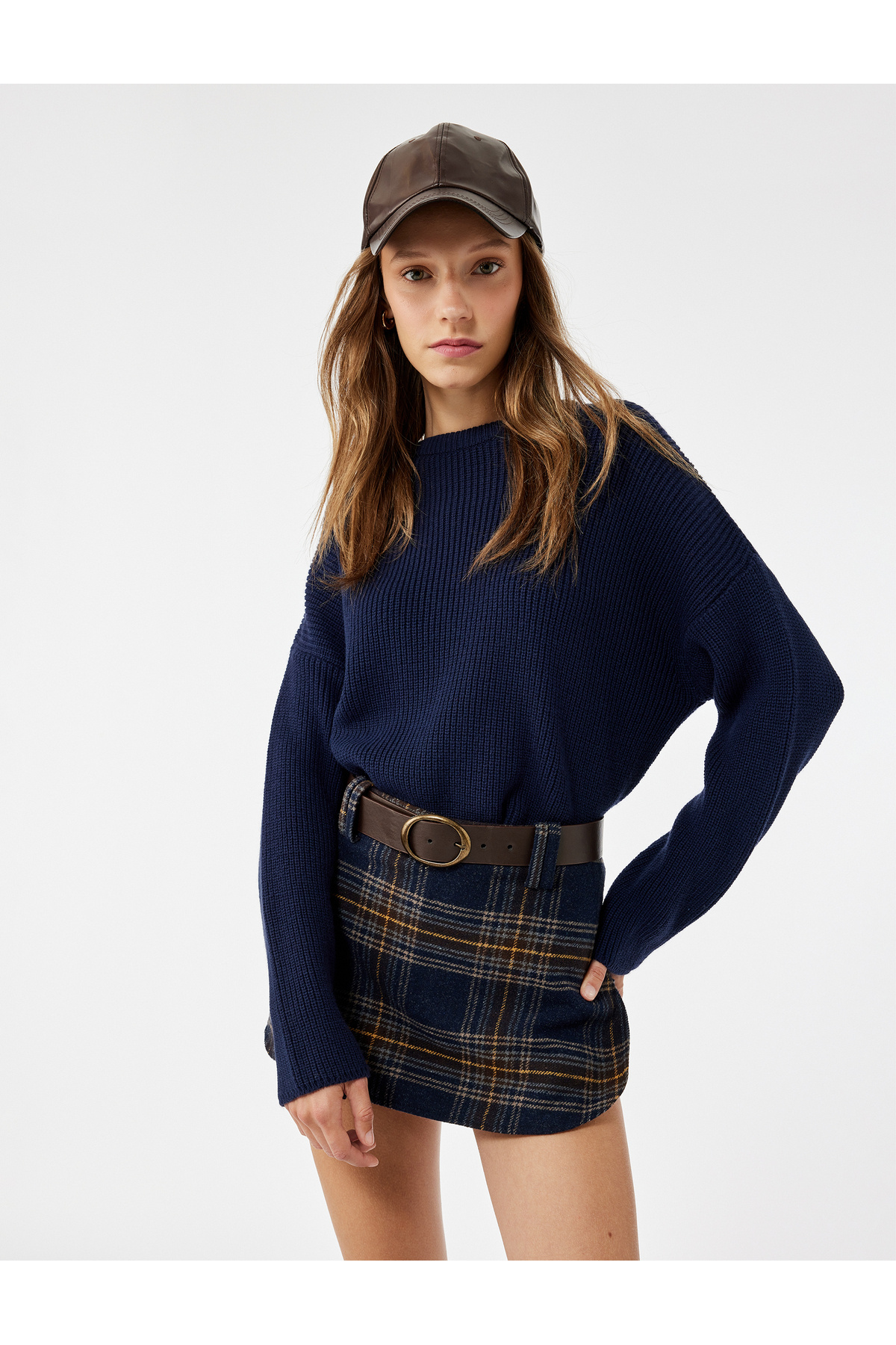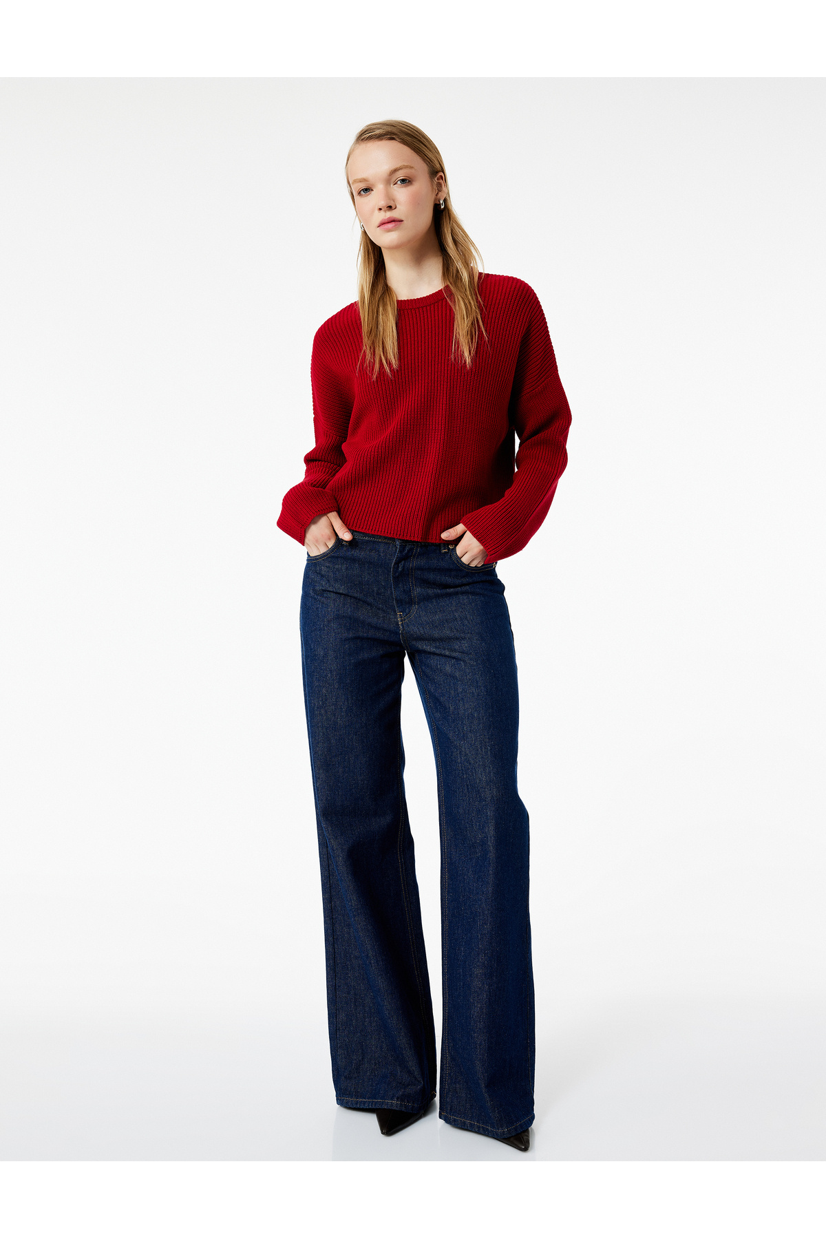 Basic Triko Kazak Bisiklet Yaka Düşük Omuzlu Basic Triko Kazak Bisiklet Yaka Düşük Omuzlu 5WAL90012IT L