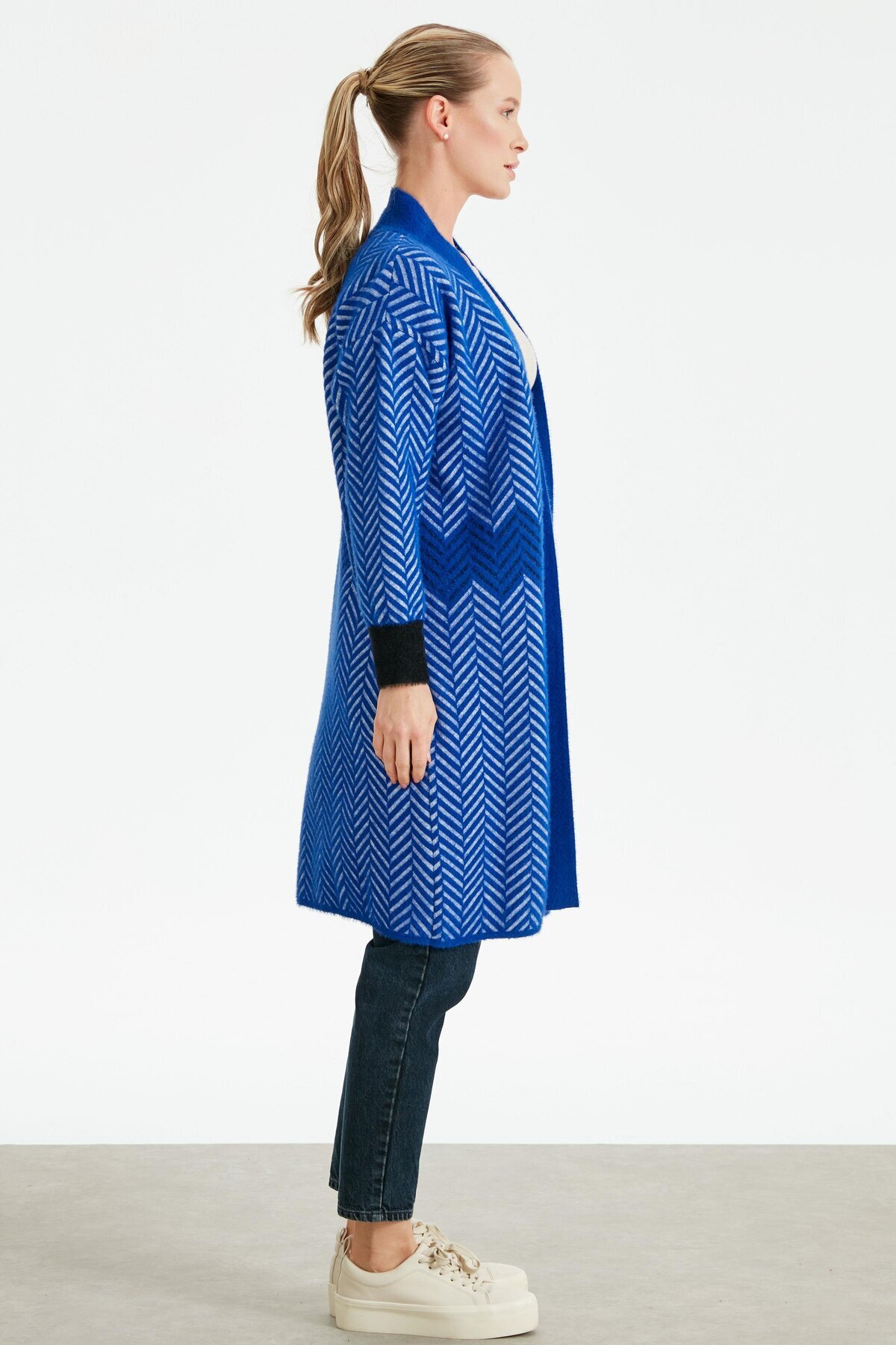 Zigzag Desenli Kontrast Manşetli Mink Triko Hırka SAKS Zigzag Desenli Kontrast Manşetli Mink Triko Hırka SAKS HRK.21121.1 تک سایز