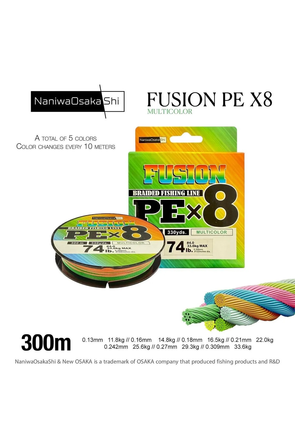 NaniwaOsakaShi Fusion 8X 300 mt Multicolor 0.24mm / 25.6 kg NaniwaOsakaShi Fusion 8X 300 mt Multicolor 0.24mm / 25.6 kg NNW30024 0.24 mm