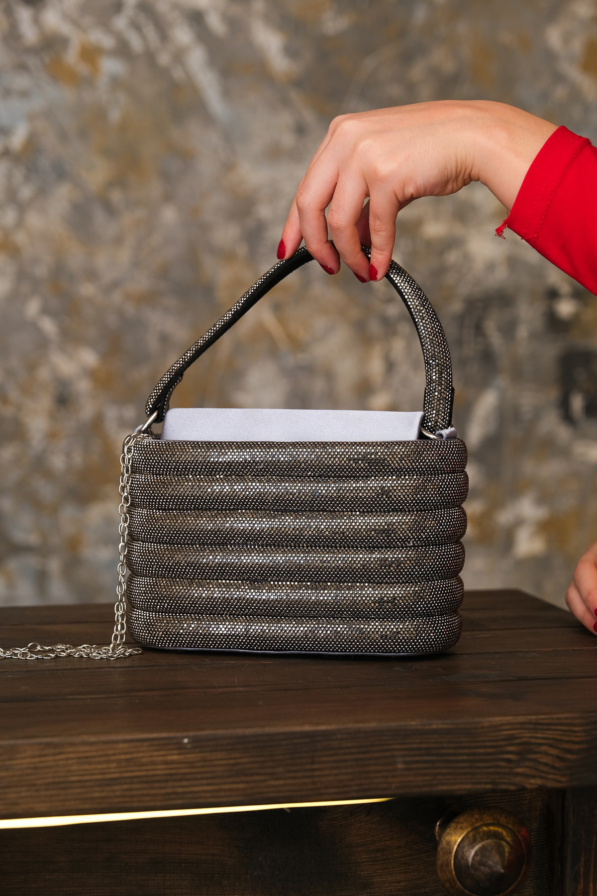 Kadın Antrasit Mini Taşlı Zincir Askılı Abiye Çanta Kadın Antrasit Mini Taşlı Zincir Askılı Abiye Çanta RZ-0246 تک سایز