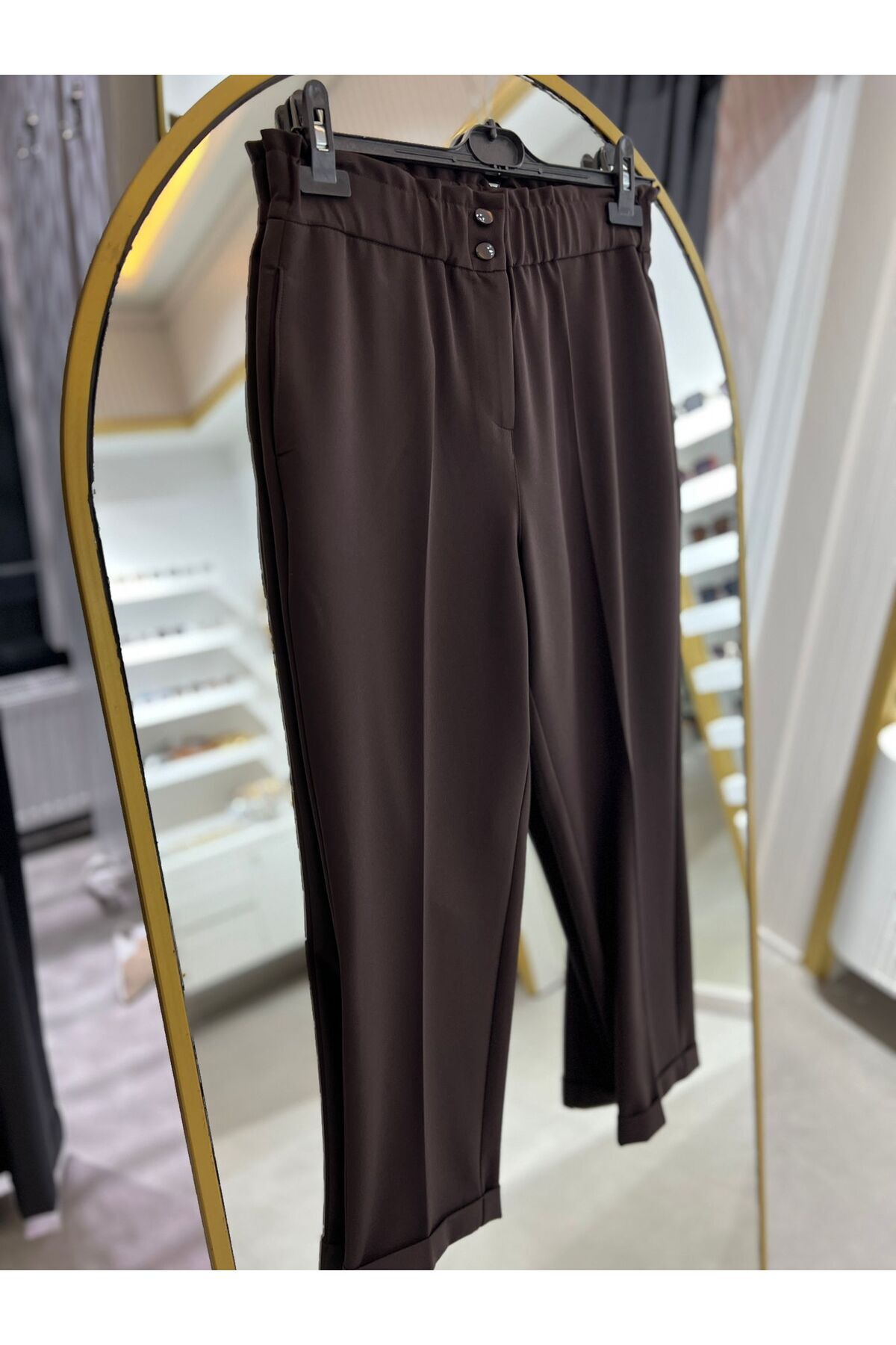 Kadın Paçası Düğme Detay Krep Pantolon Kadın Paçası Düğme Detay Krep Pantolon 251534SYH 42
