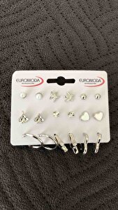 Yıldız Çiçek ve Kalp Tasarımlı Kalp ve Yıldız Halka Küpeli Zirkon Top ve İnci Küpeli 9lu Küpe Seti Yıldız Çiçek ve Kalp Tasarımlı Kalp ve Yıldız Halka Küpeli Zirkon Top ve İnci Küpeli 9lu Küpe Seti KP00,00,X956 تک سایز