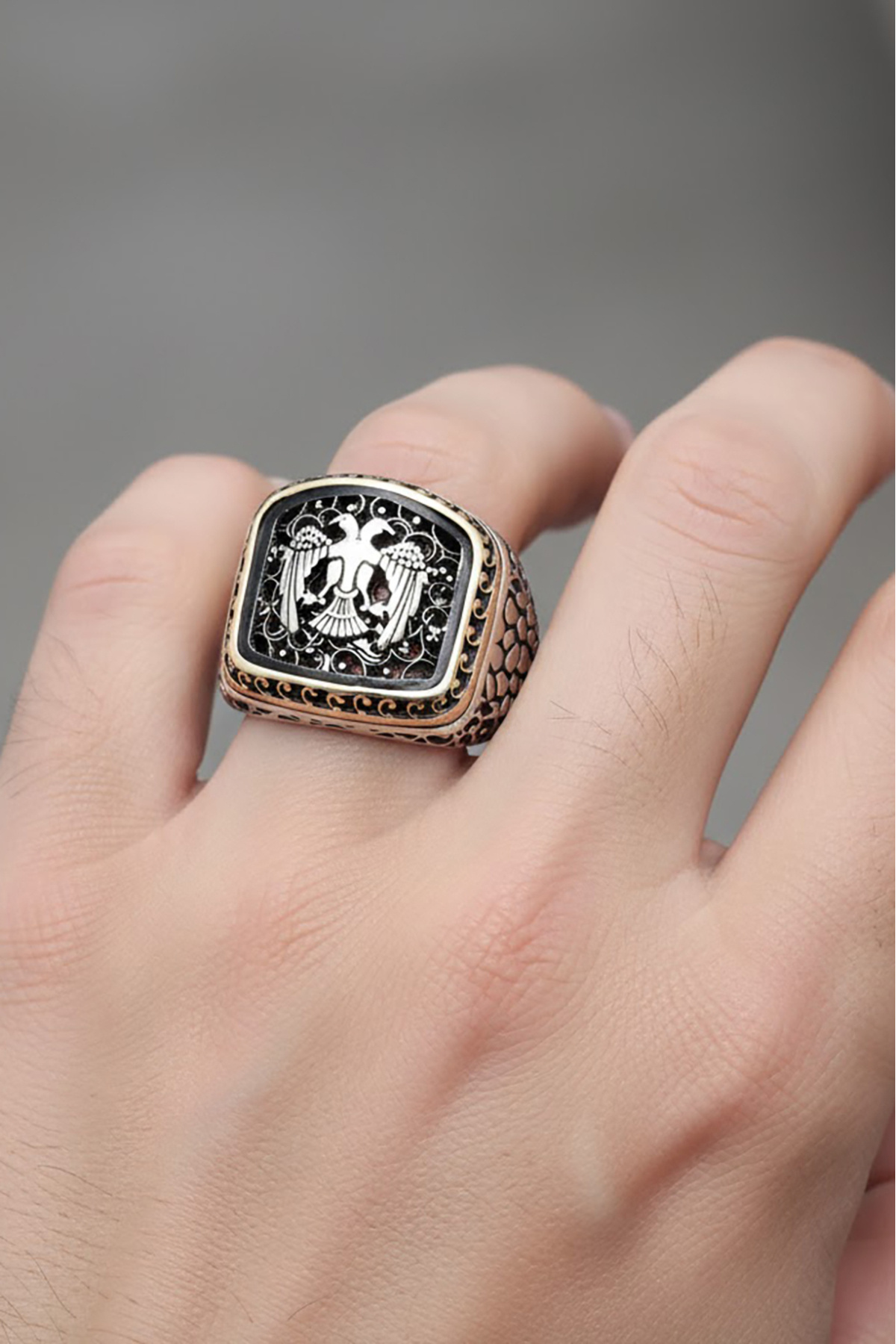 Erkek Benekli Model Selçuklu Kartalı Model Taşsız Gümüş Yüzük Erkek Benekli Model Selçuklu Kartalı Model Taşsız Gümüş Yüzük EYO2532 30