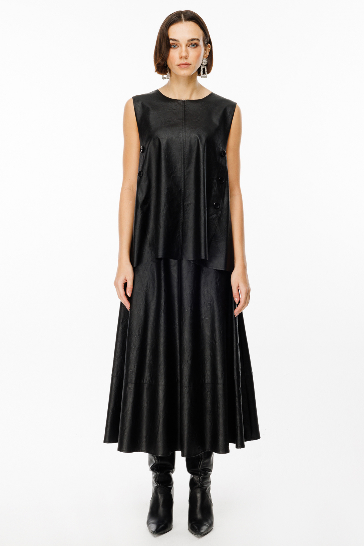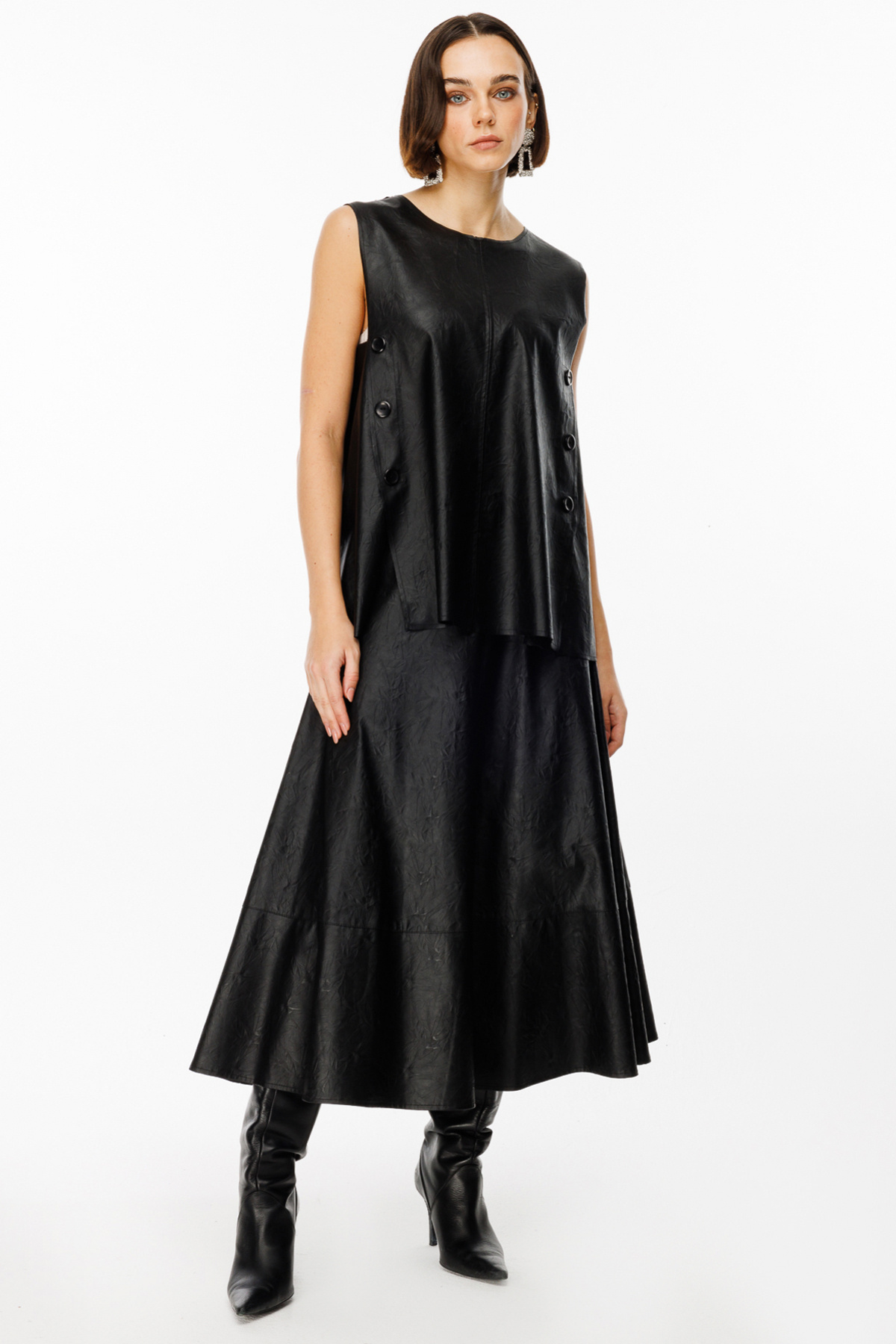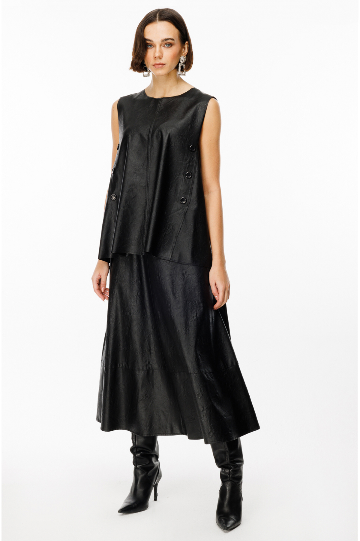 Kenarları Düğmeli Deri Bluz Kenarları Düğmeli Deri Bluz 25K.ON.BLZ.44310.01 L