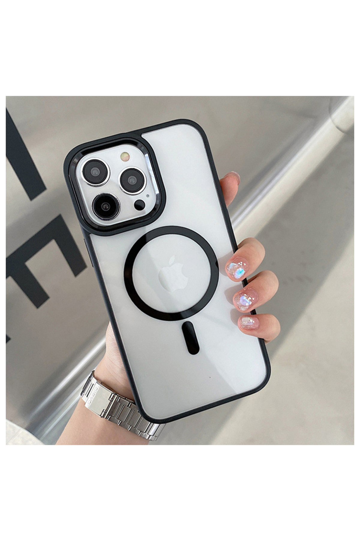 iPhone 14 Pro Max Kılıf Magsafe Özellikli Metal Kamera Ve Tuş Tasarımlı Sararmaz Sert Şeffaf Siyah iPhone 14 Pro Max Kılıf Magsafe Özellikli Metal Kamera Ve Tuş Tasarımlı Sararmaz Sert Şeffaf Siyah 14promax-krom-magsafe تک سایز