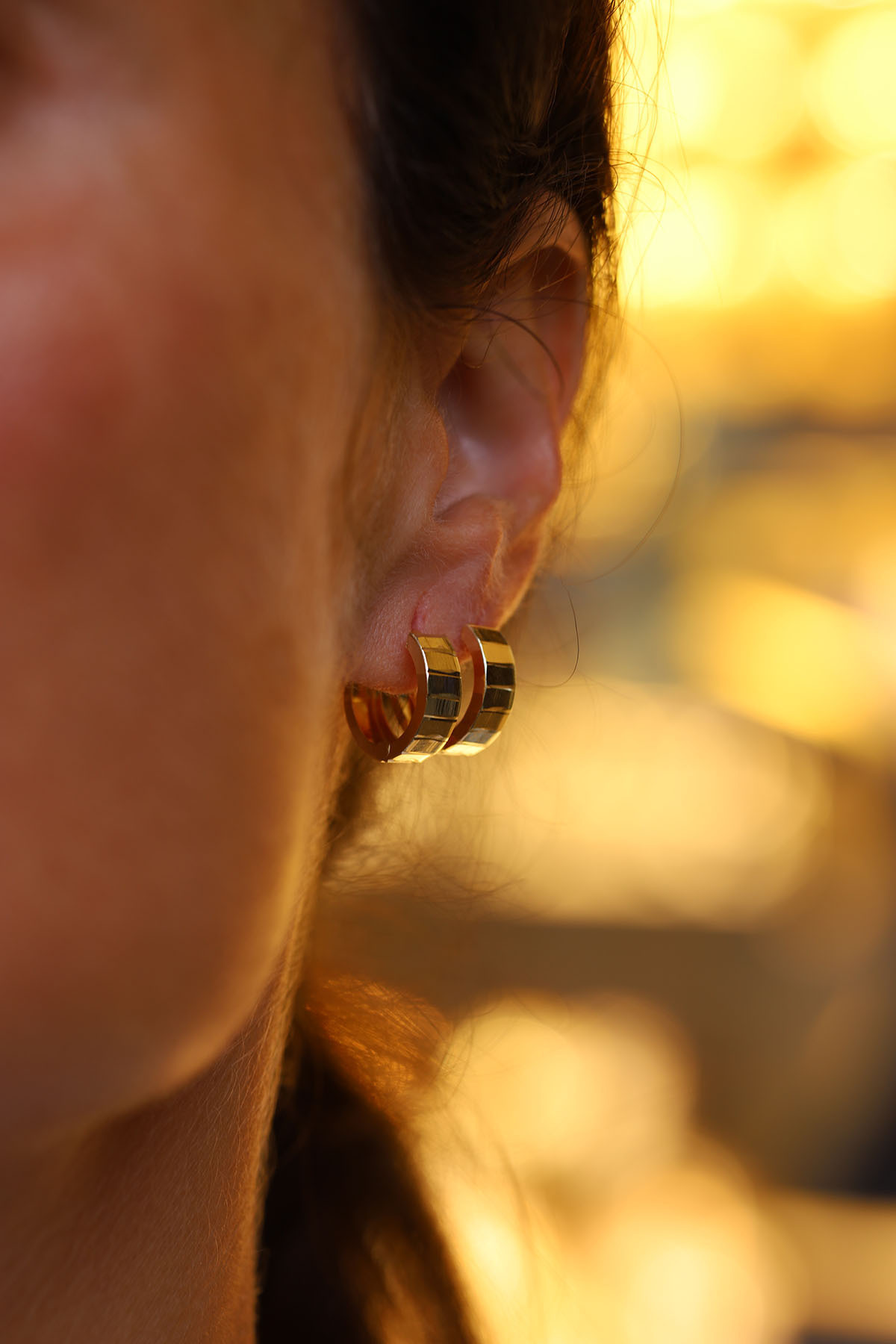 14 Ayar Altın Çizgi Desenli Halka Küpe 14 Ayar Altın Çizgi Desenli Halka Küpe KP27059 تک سایز