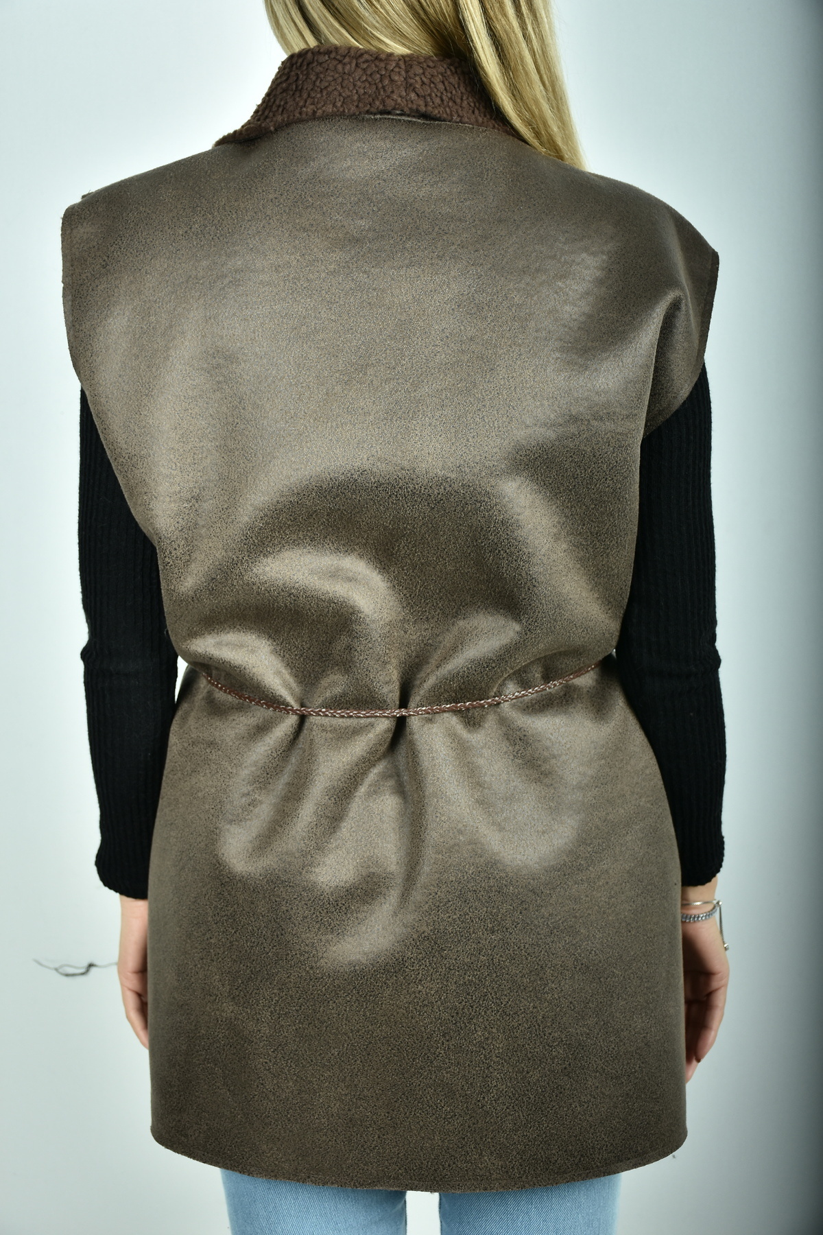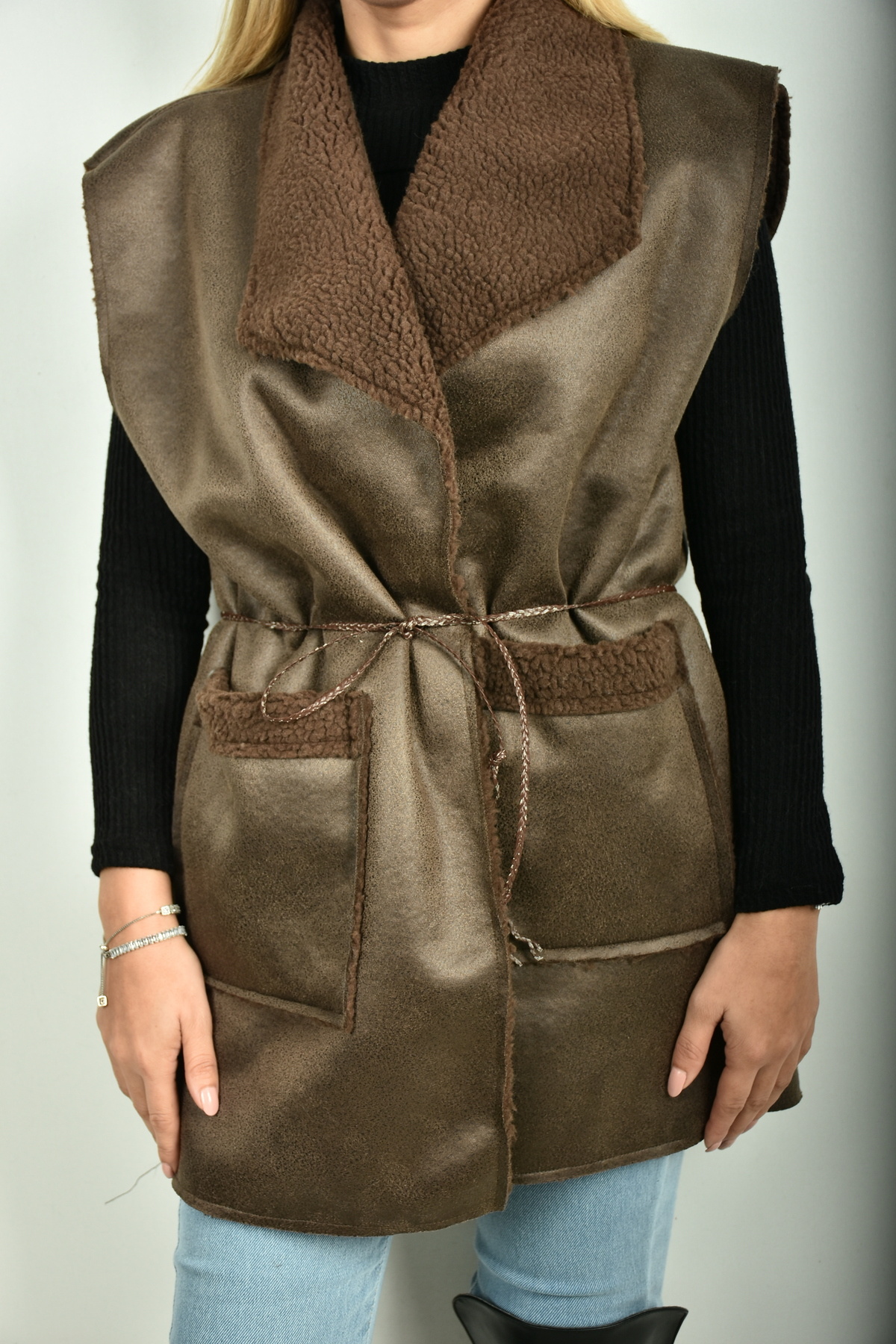 Önden Cepli Şal Yaka Peluş Detaylı Nubuk Yelek Önden Cepli Şal Yaka Peluş Detaylı Nubuk Yelek 02070182 Standart