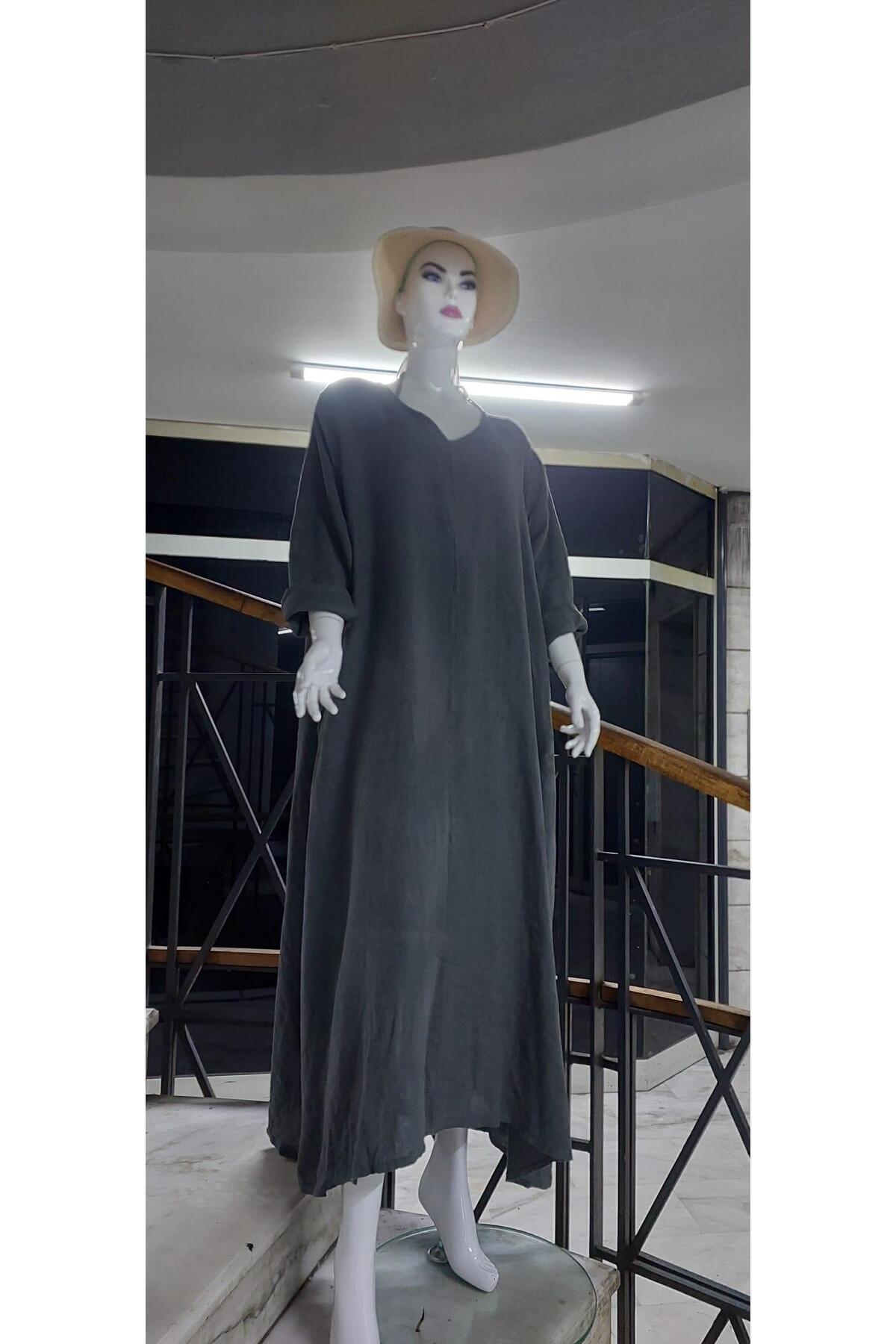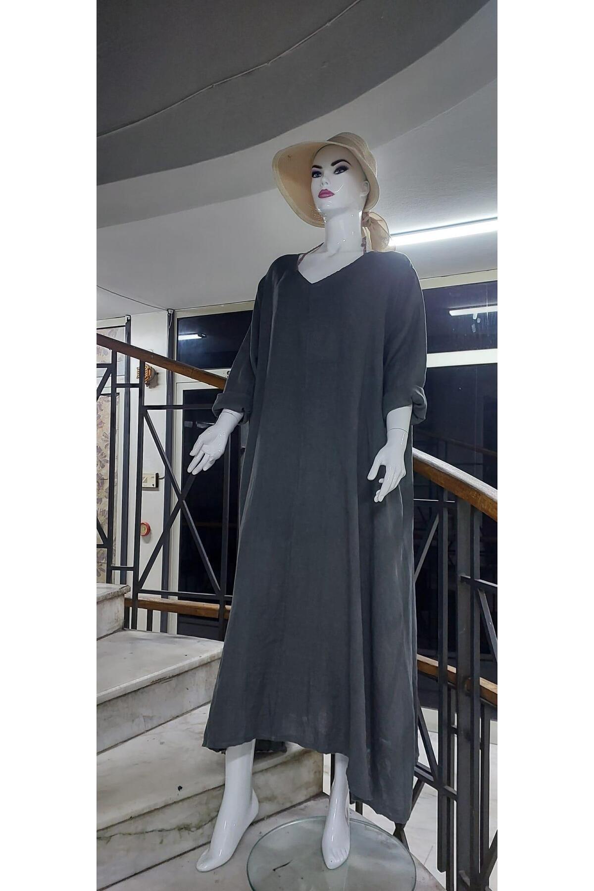 İtalyan V yaka Uzun Kol Keten Elbise İtalyan V yaka Uzun Kol Keten Elbise BHMSTL1319-018 Standart