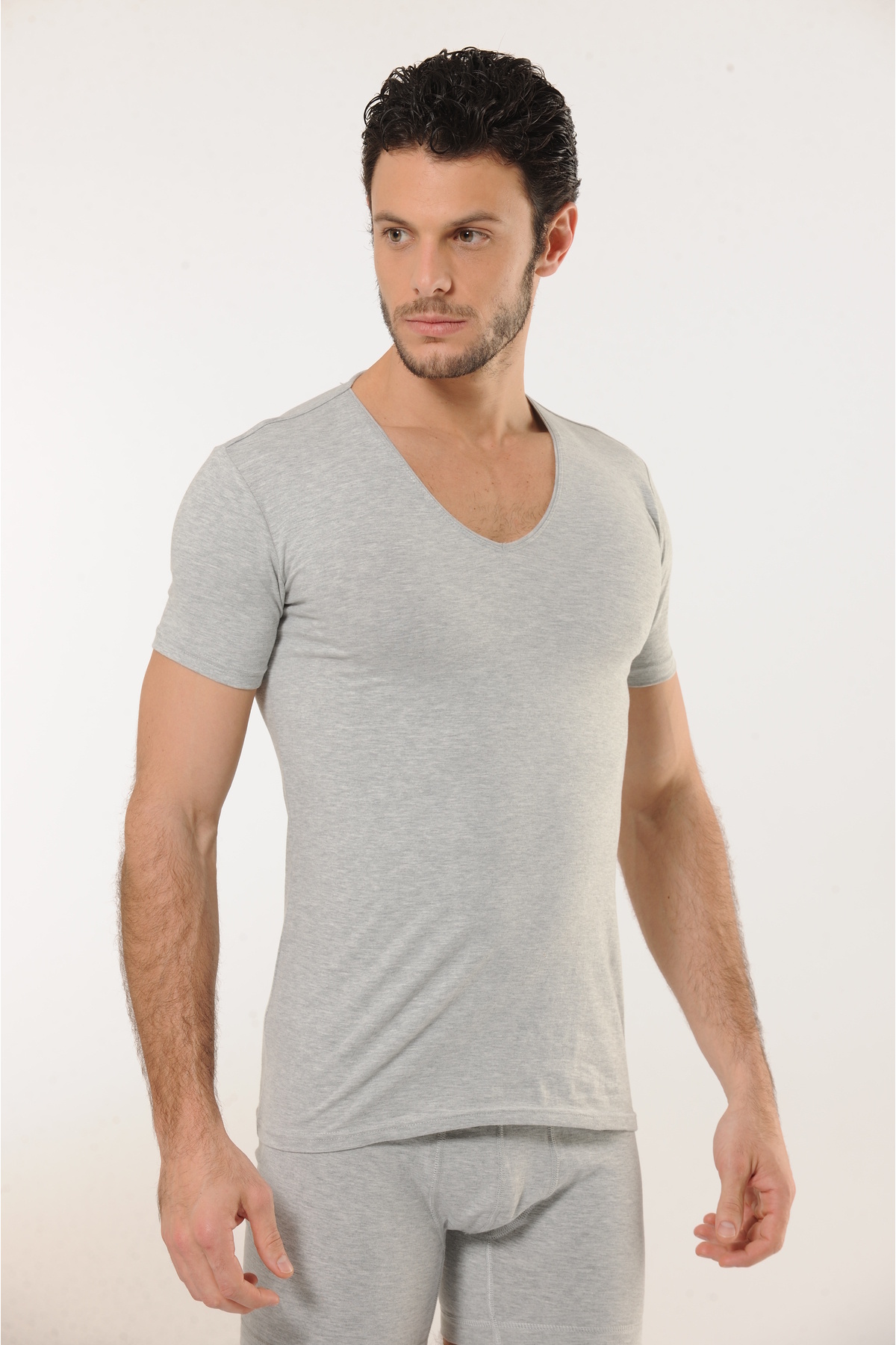 Likralı Derin V Yaka Kısa Kollu Siyah T-shirt Likralı Derin V Yaka Kısa Kollu Siyah T-shirt VKK713 XL