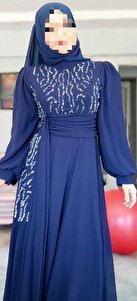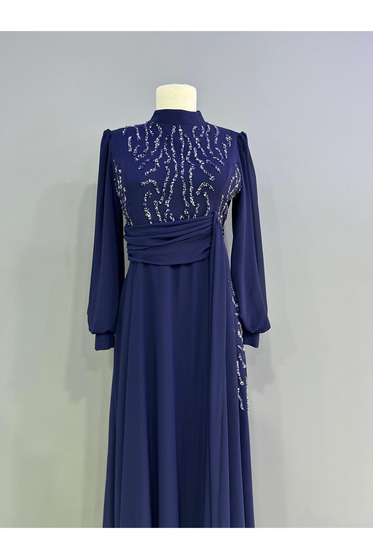 Şifon Taşlı Işlemeli Lacivert Abiye Şifon Taşlı Işlemeli Lacivert Abiye 00014 52