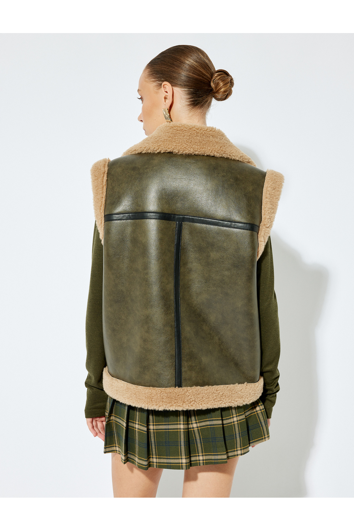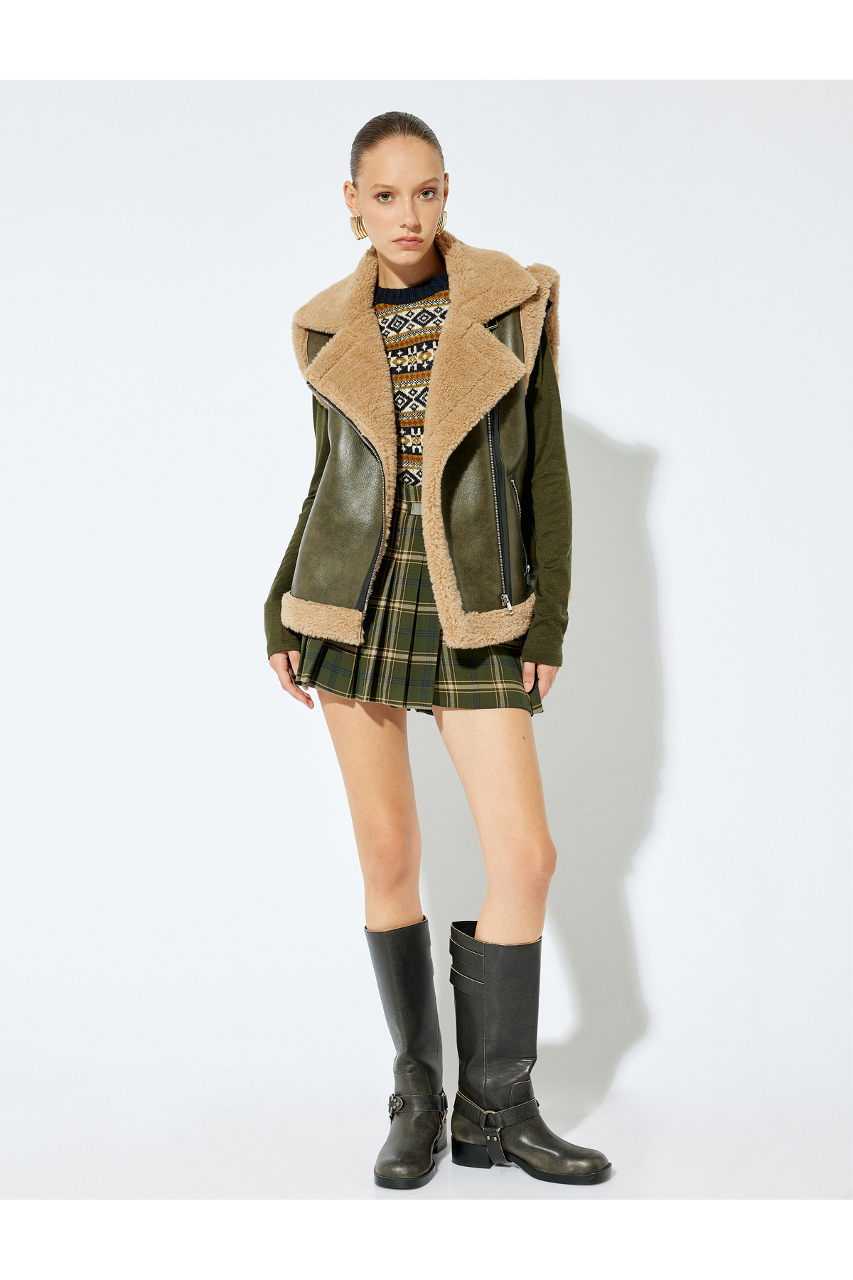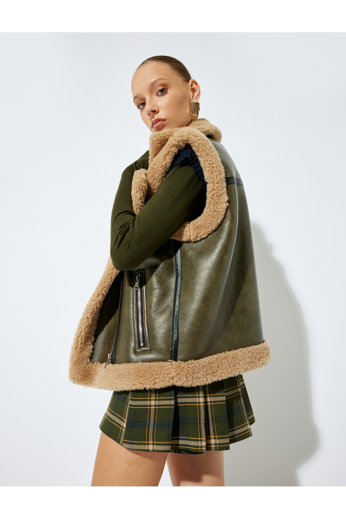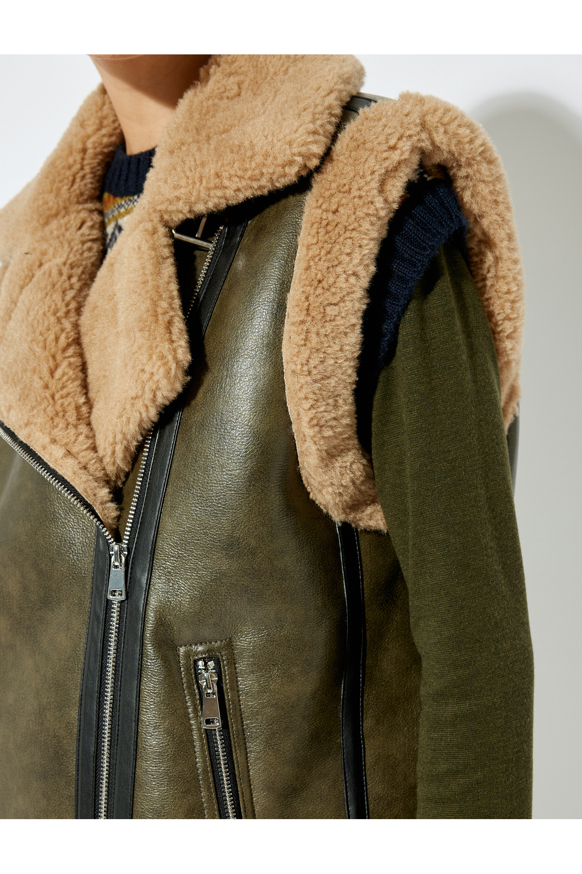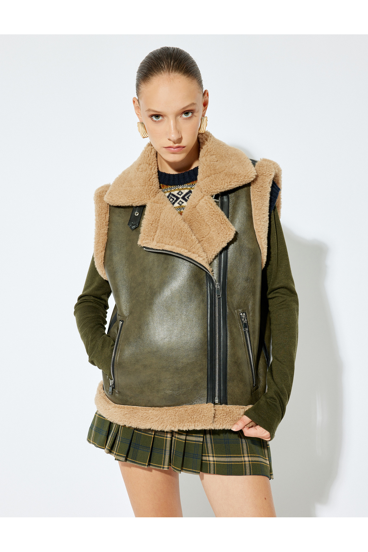 X Sima Tarkan - Yakası Suni Kürk Detaylı Fermuarlı Cepli Suni Deri Biker Yelek X Sima Tarkan - Yakası Suni Kürk Detaylı Fermuarlı Cepli Suni Deri Biker Yelek 5wak20212 42