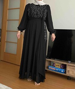Şifon Taşlı İşlemeli Lavanta Abiye Şifon Taşlı İşlemeli Lavanta Abiye 00014 52