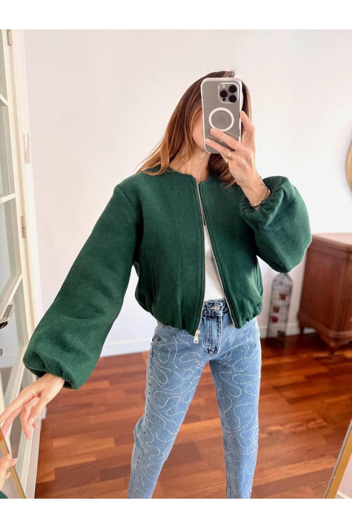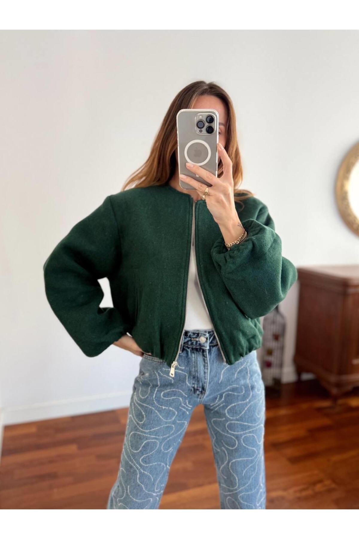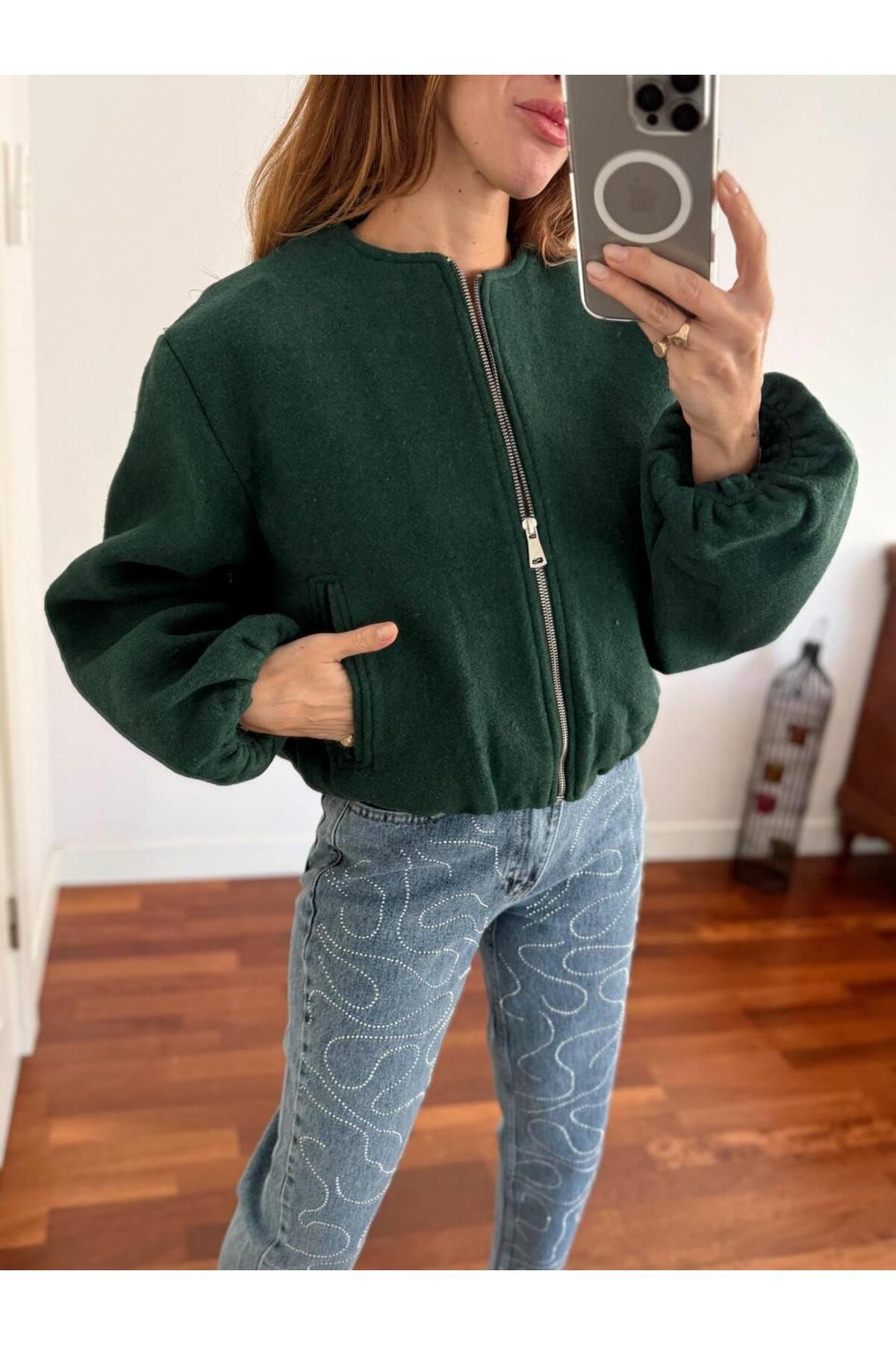 Kadın Balon Kol Kaşe Yeşil Bomber Ceket Kadın Balon Kol Kaşe Yeşil Bomber Ceket 24KC05164 L
