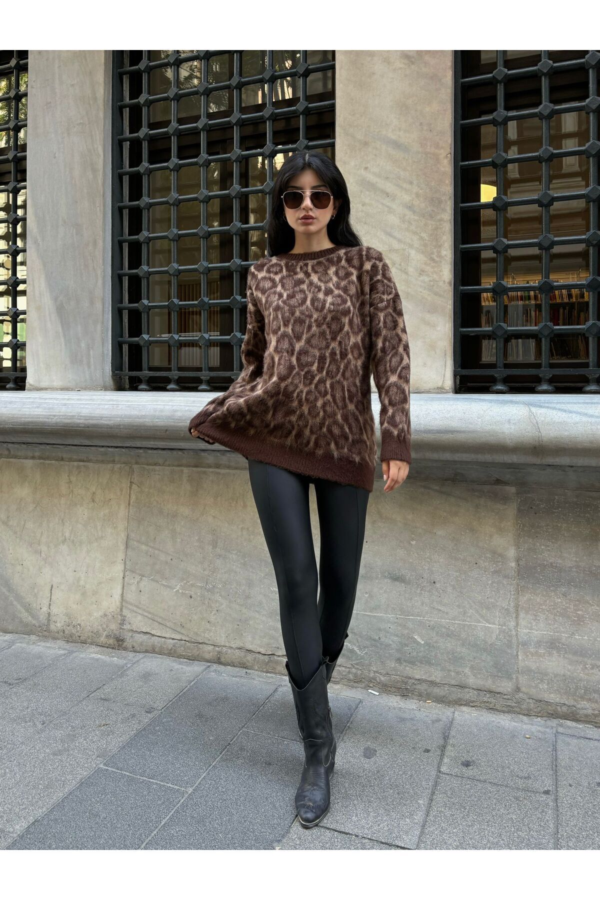 Bisiklet Yaka Şardonlu Leopar Triko Kazak Bisiklet Yaka Şardonlu Leopar Triko Kazak 2223 Standart