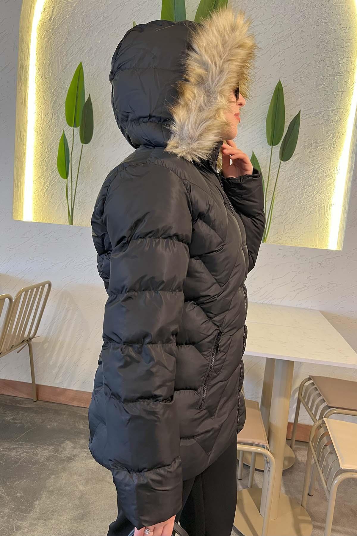 Şapkası Tüylü Şişme Mont Siyah Şapkası Tüylü Şişme Mont Siyah PDFİX7030 42