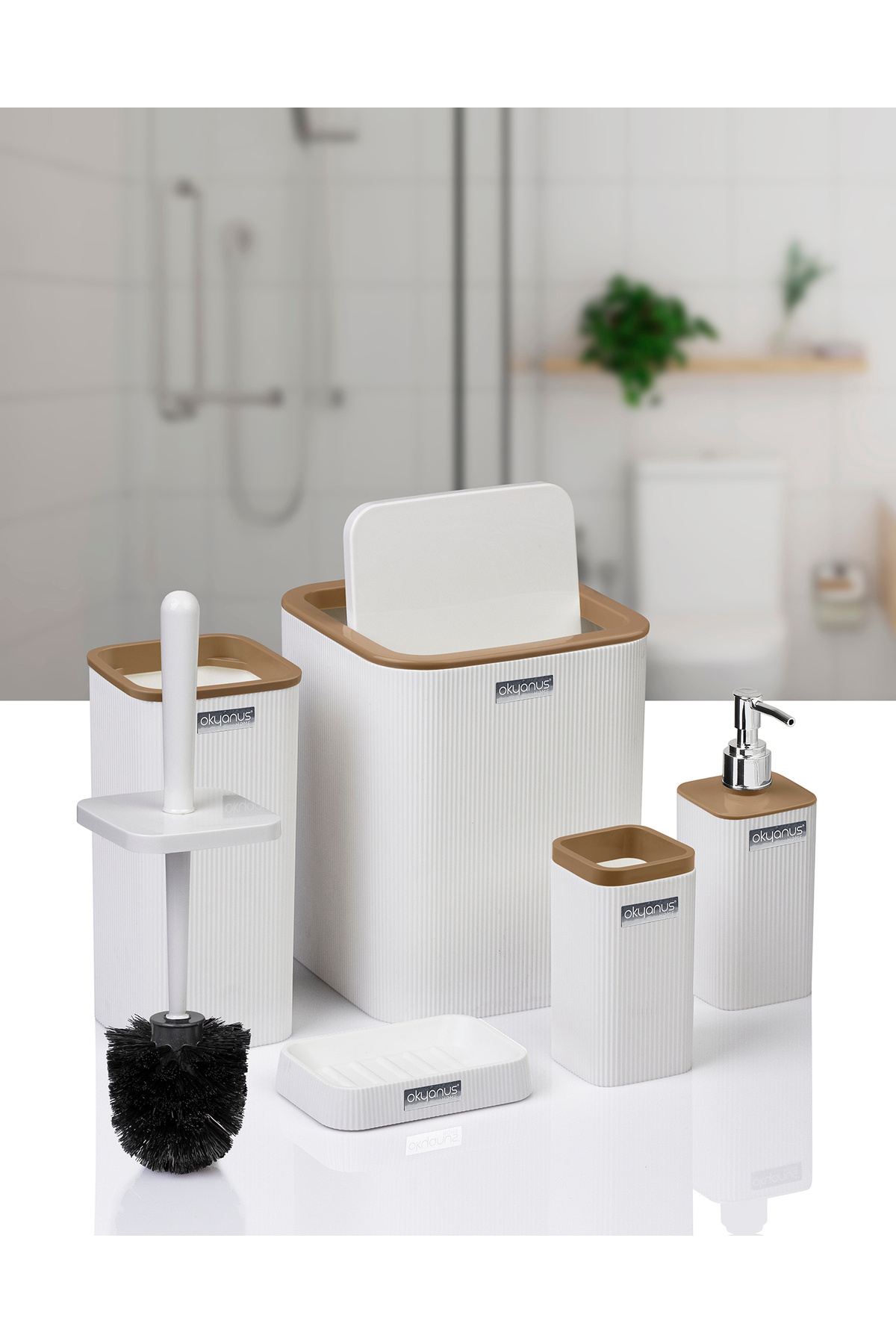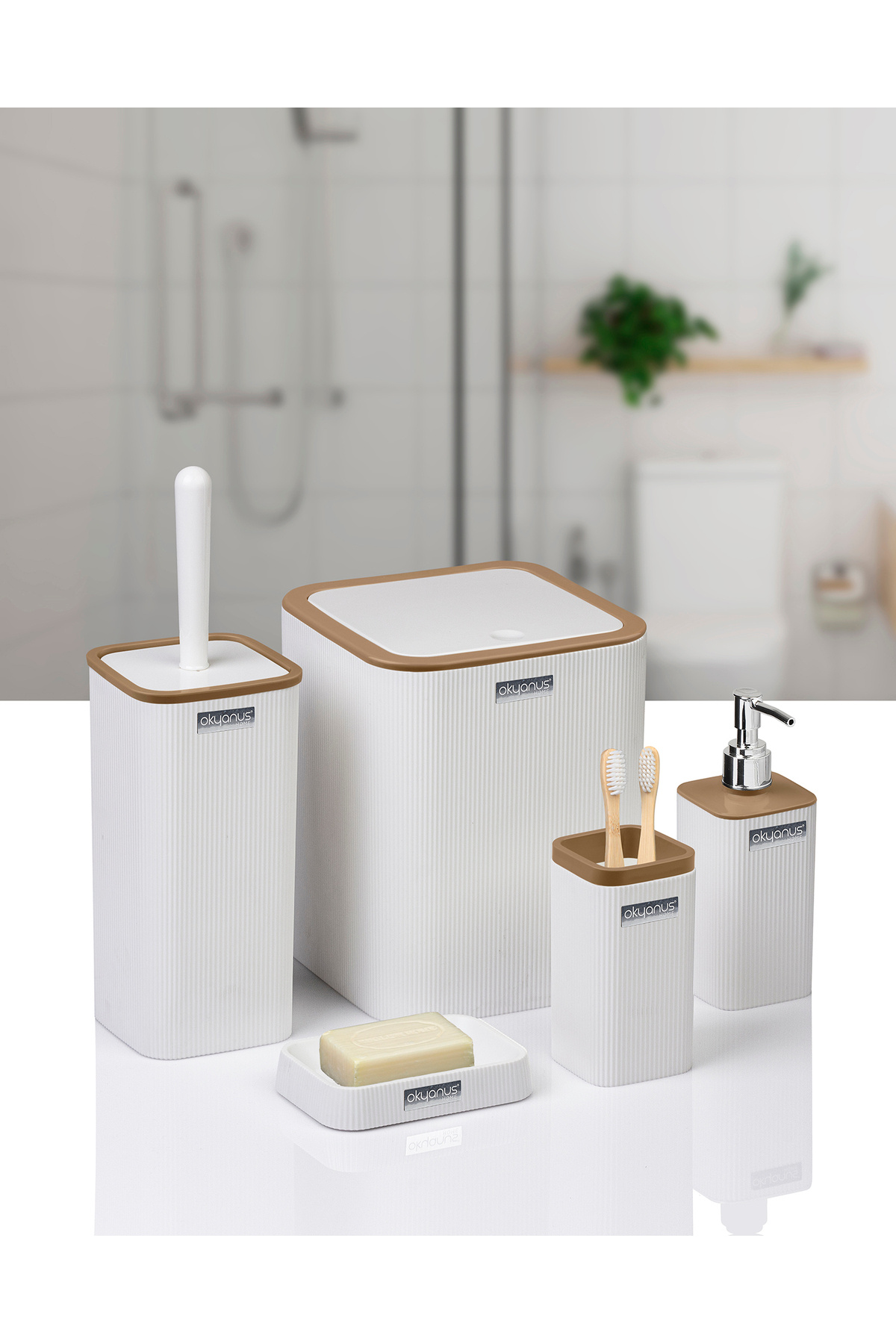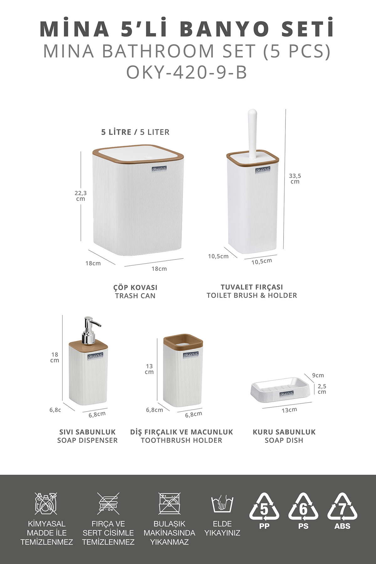 Mina Due Beyaz Çizgili Kare 5'li Banyo Seti Mina Due Beyaz Çizgili Kare 5'li Banyo Seti OKY-420-9 تک سایز