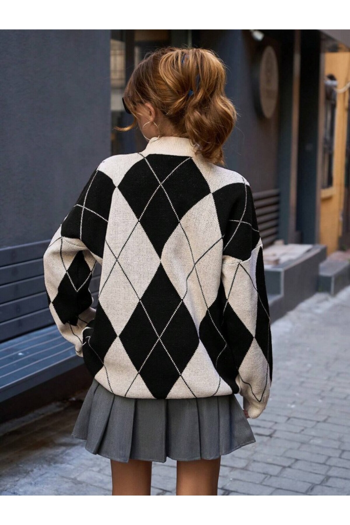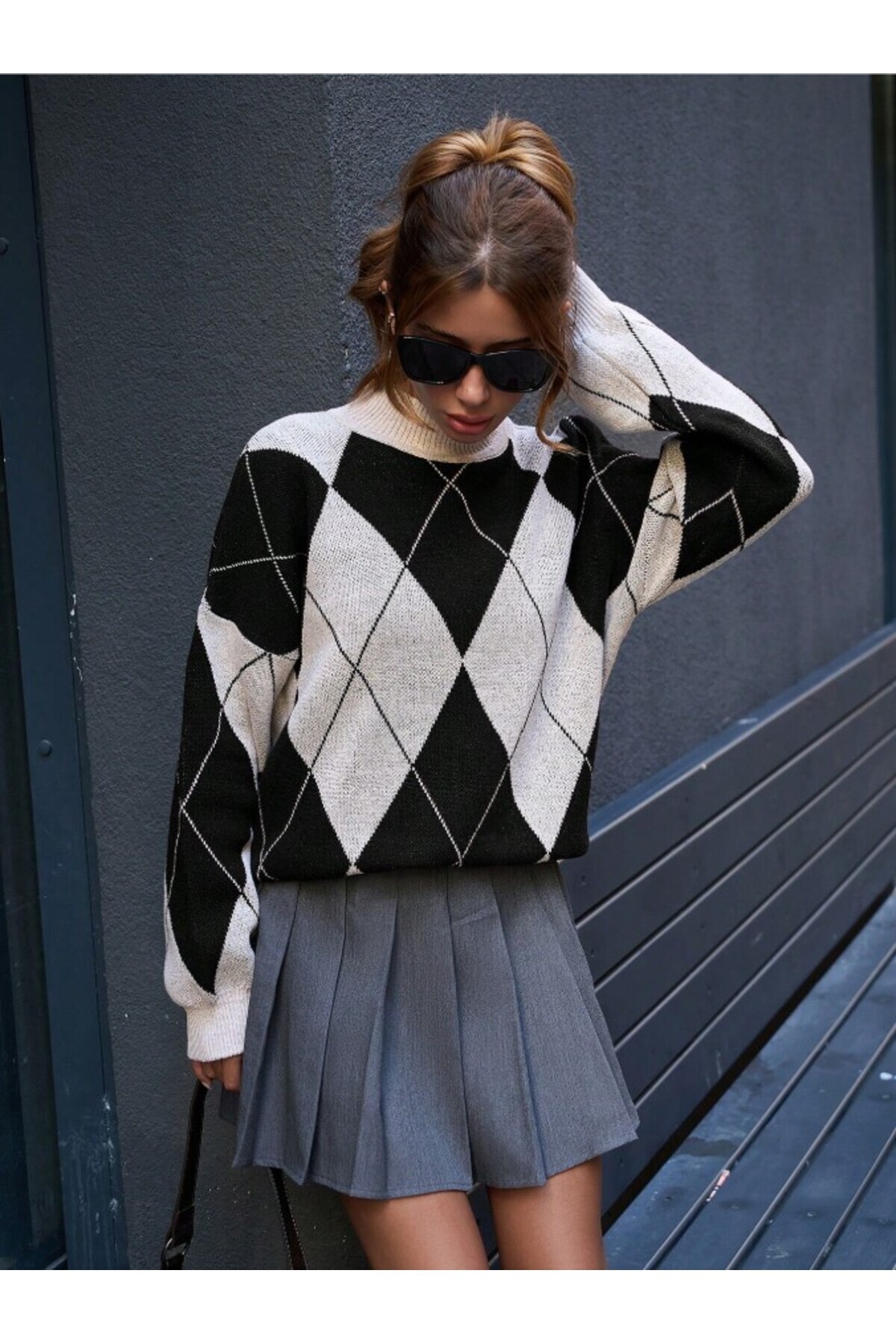 Kadın Baklava Desenli Siyah Dik Yaka Triko Kazak Kadın Baklava Desenli Siyah Dik Yaka Triko Kazak fmoda6100 L