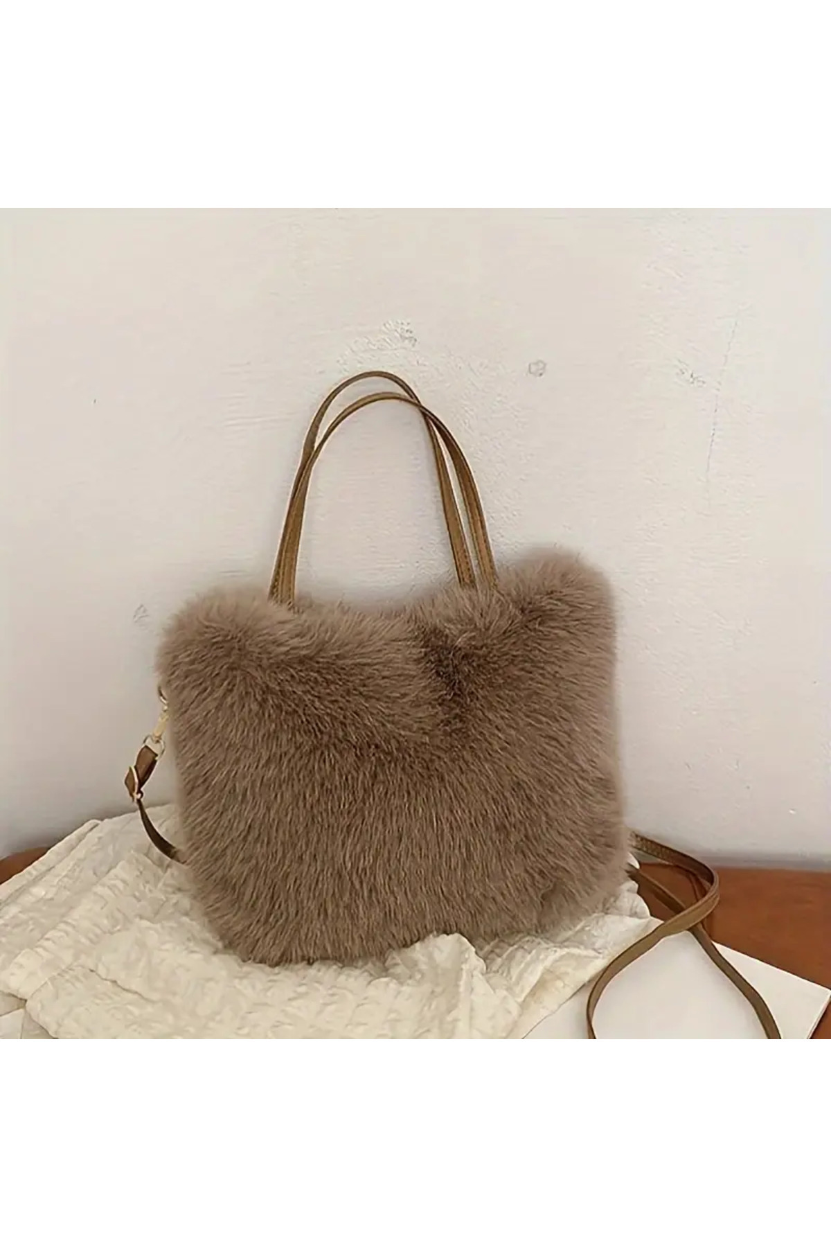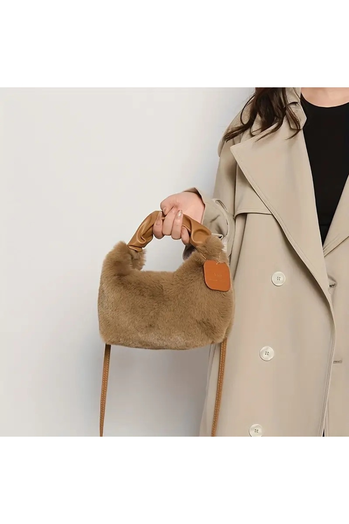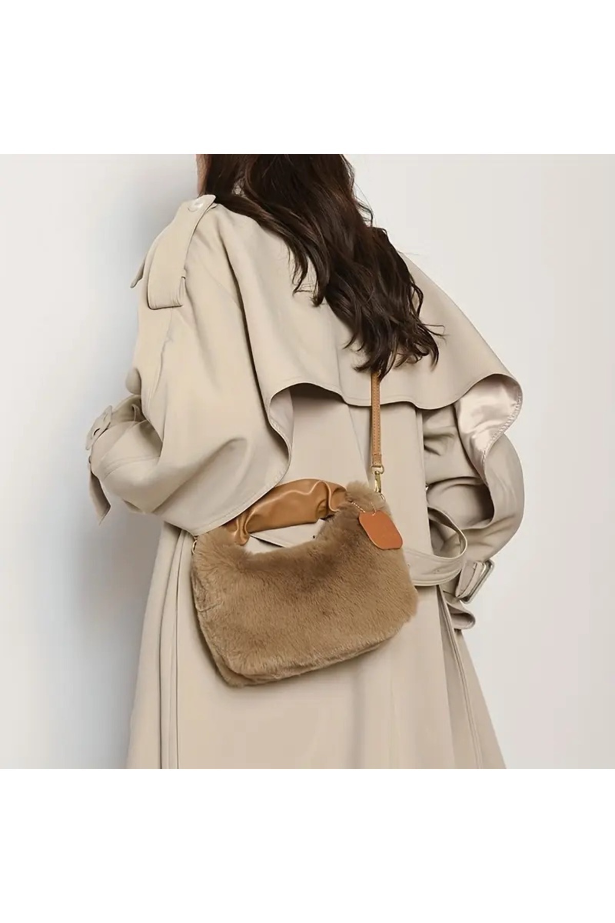 Kadın Şık Kürk Fermuarlı Yumuşak Peluş Omuz Çantası Kadın Şık Kürk Fermuarlı Yumuşak Peluş Omuz Çantası 17061 AA