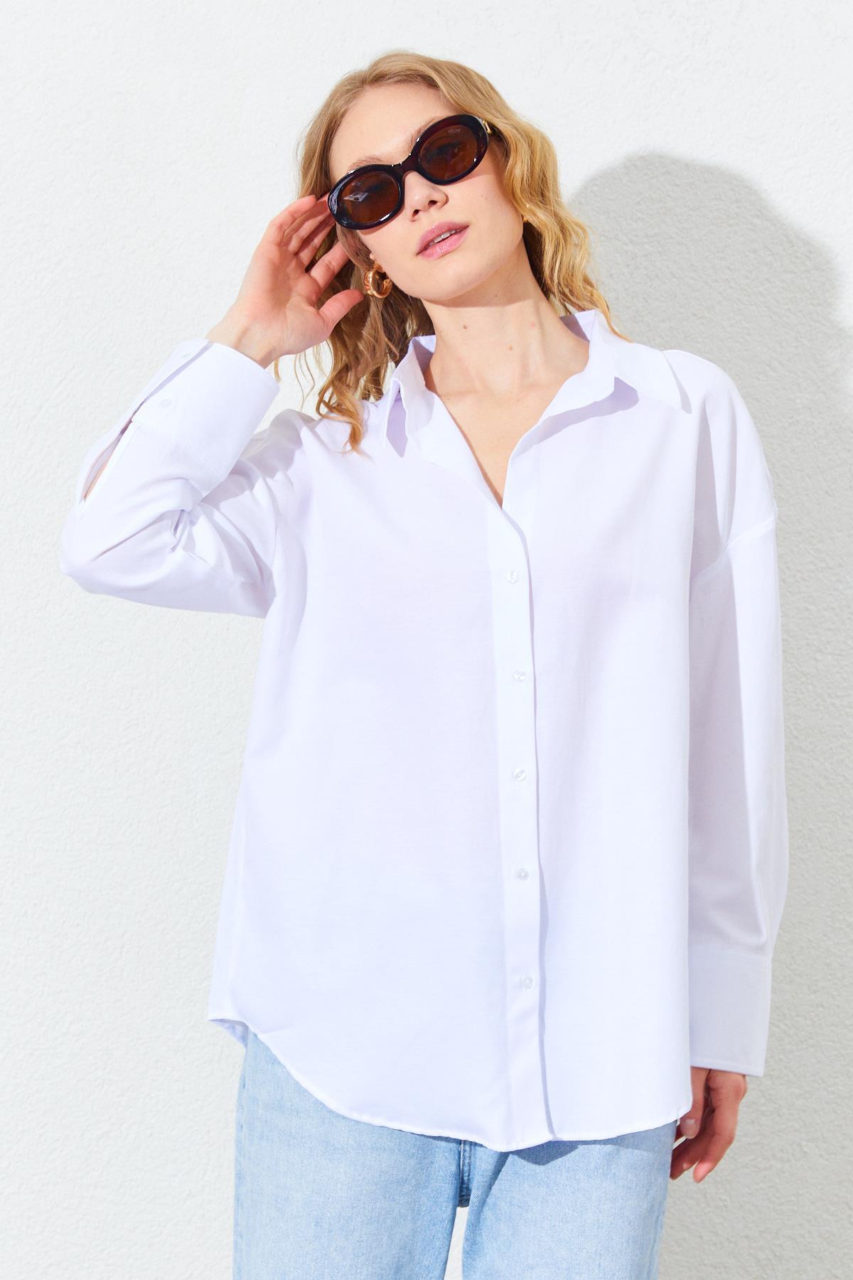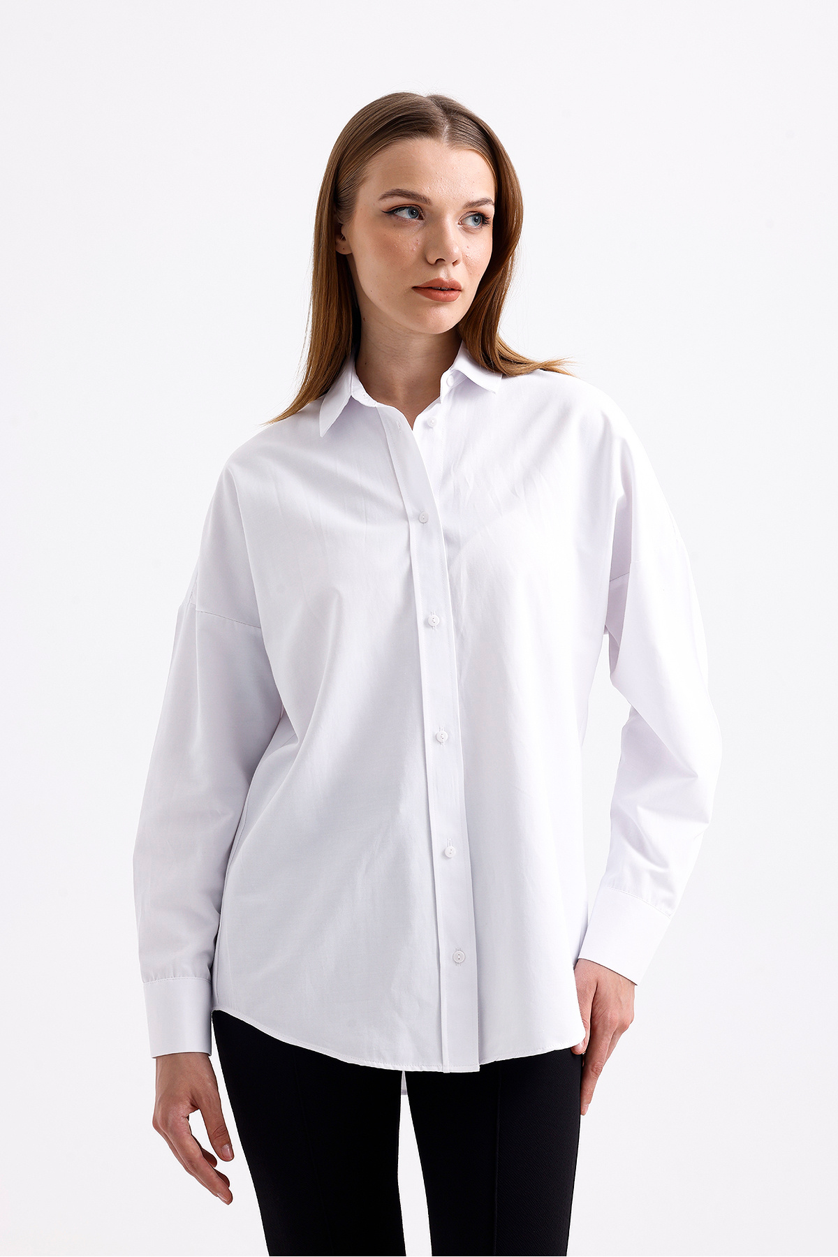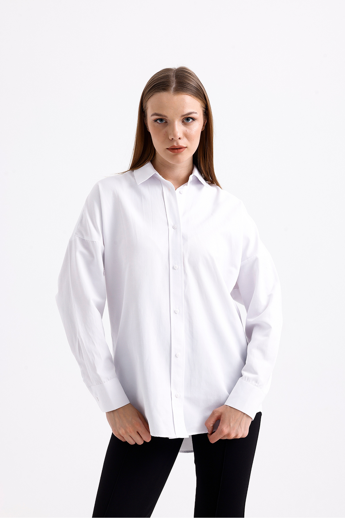 Oversize Uzun Basic Gömlek - Beyaz Oversize Uzun Basic Gömlek - Beyaz oversize2025 42-44