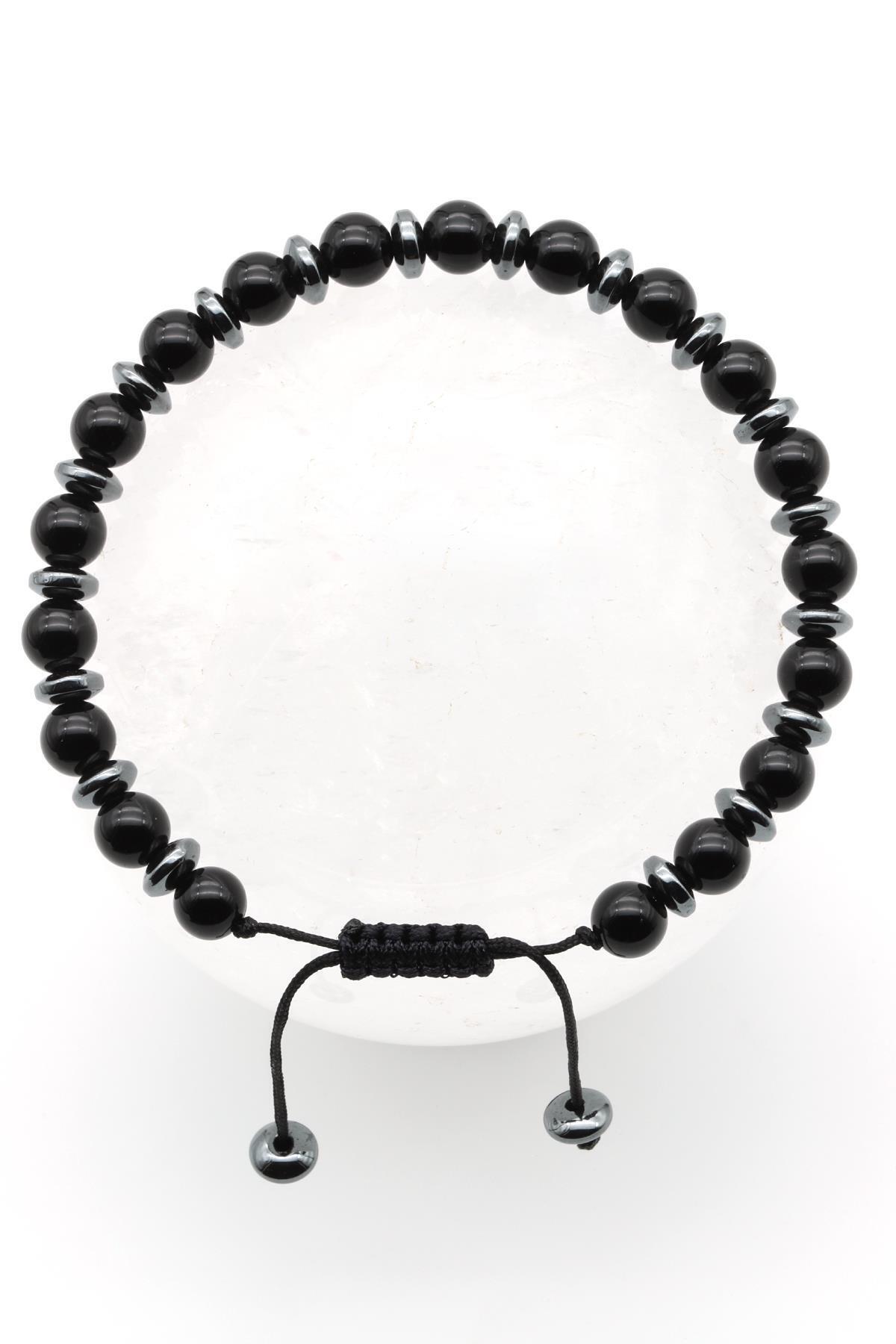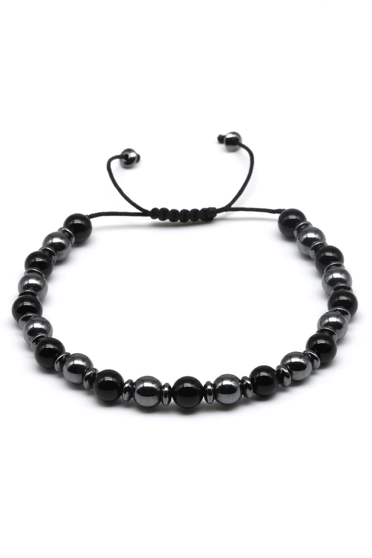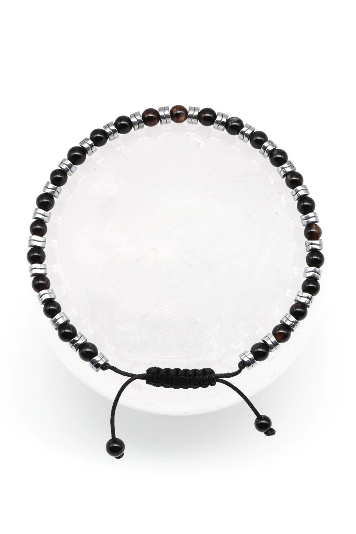 Oniks-Hematit Doğal Taş Makrome Örme Bileklik Küre Kesim Oniks-Hematit Doğal Taş Makrome Örme Bileklik Küre Kesim BMK-457 تک سایز