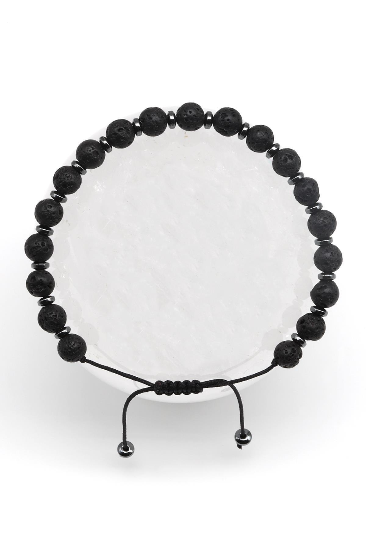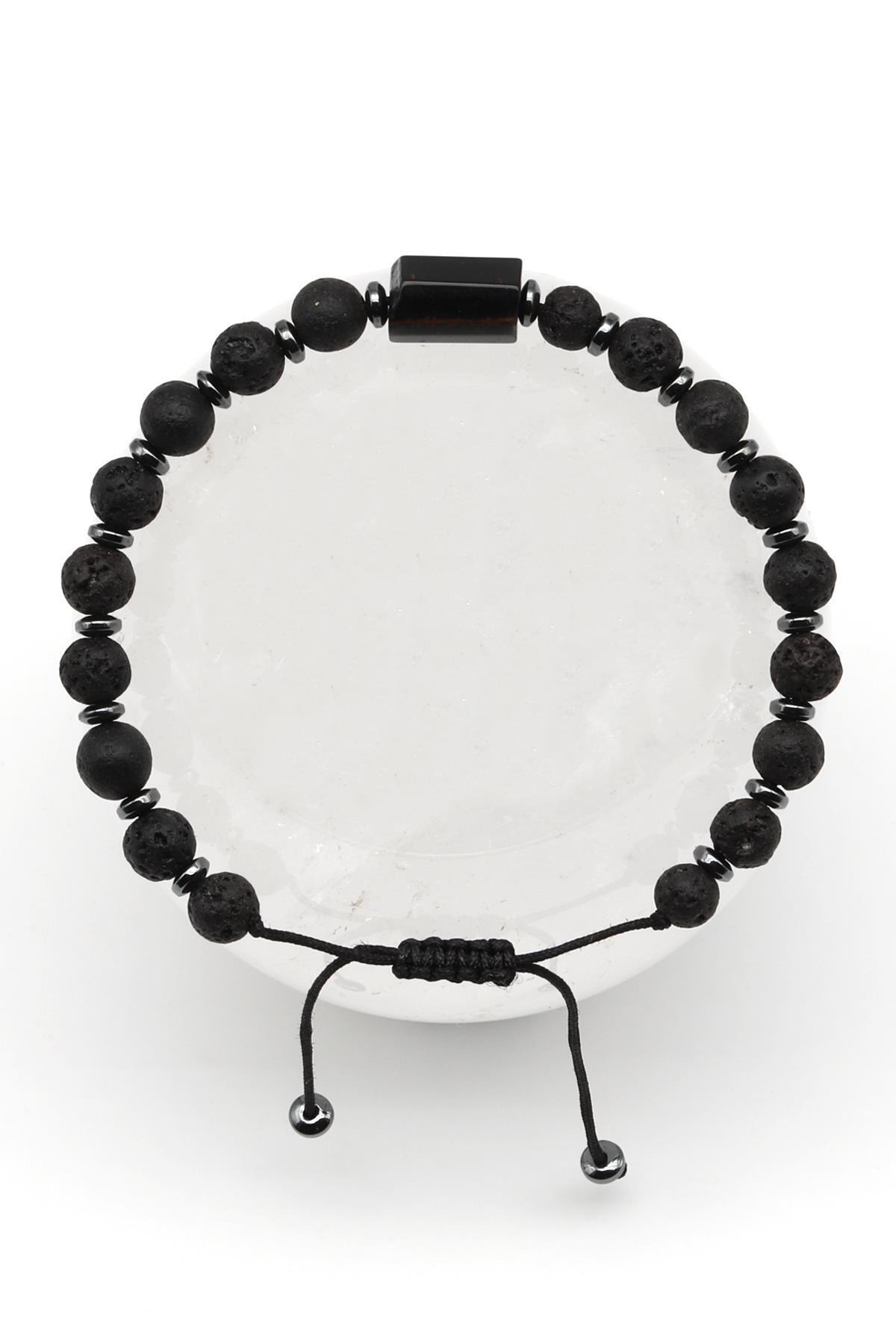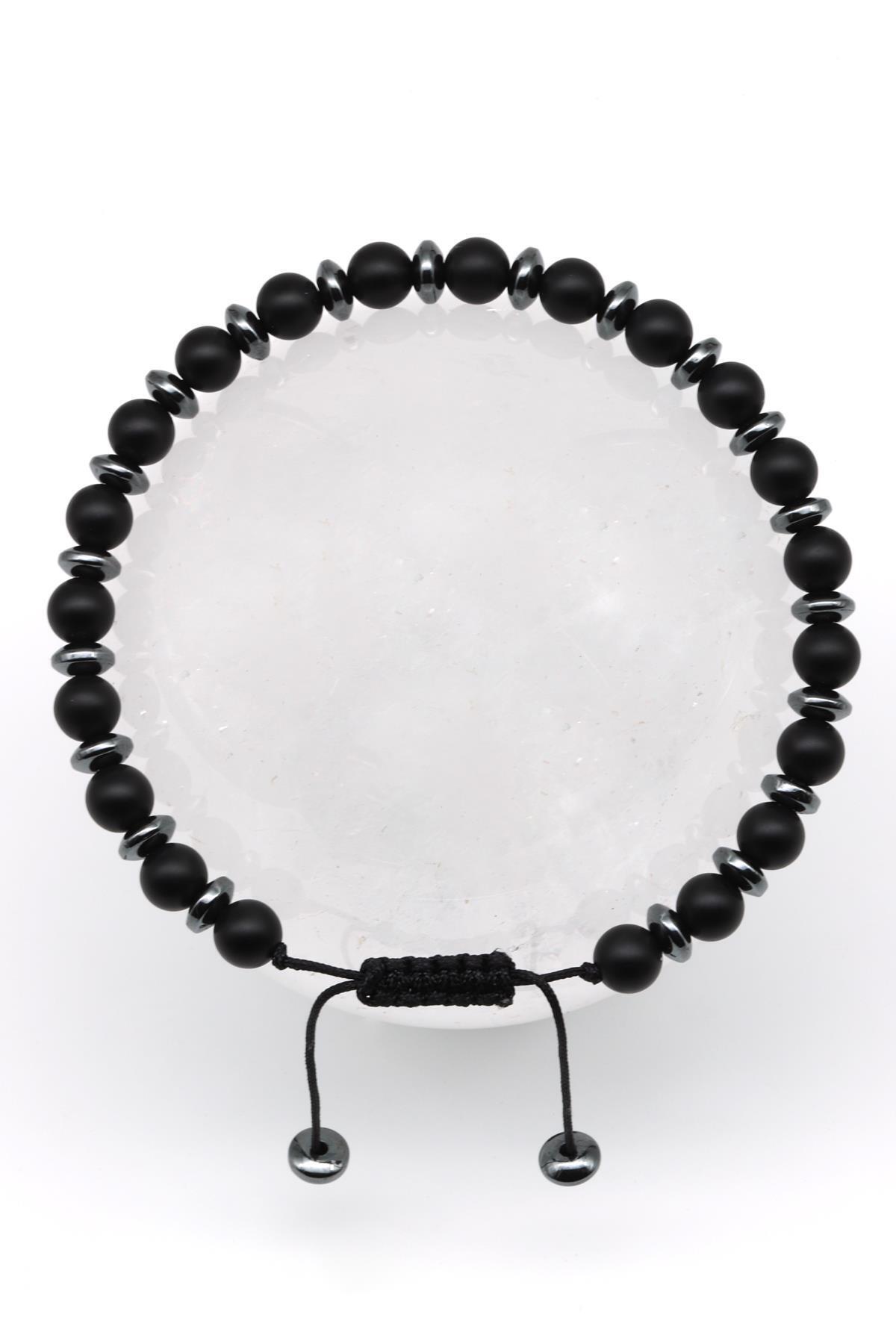 Oniks-Hematit Doğal Taş Makrome Örme Bileklik Küre Kesim Oniks-Hematit Doğal Taş Makrome Örme Bileklik Küre Kesim BMK-457 تک سایز