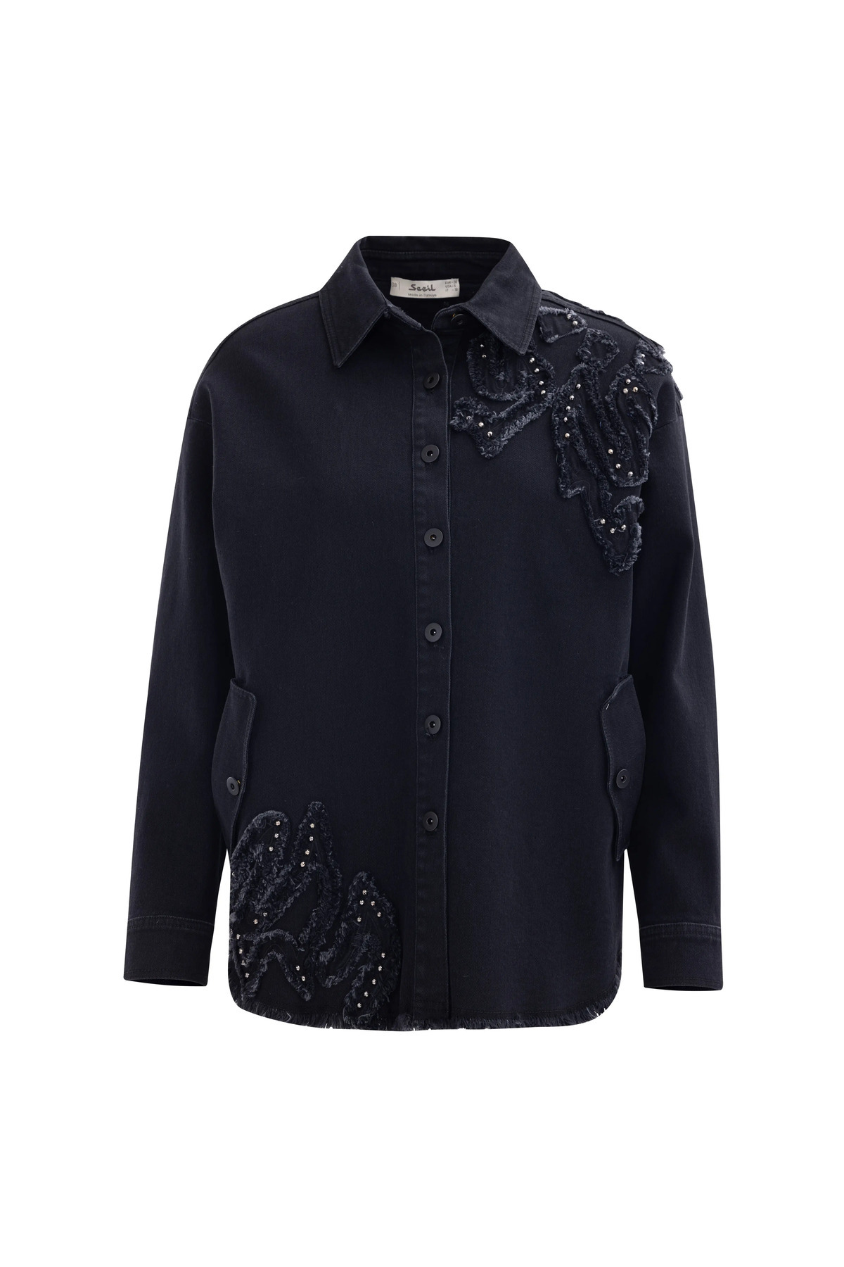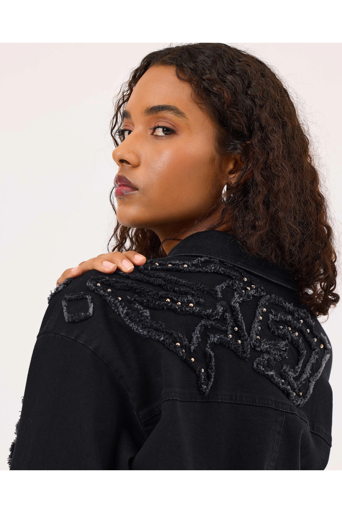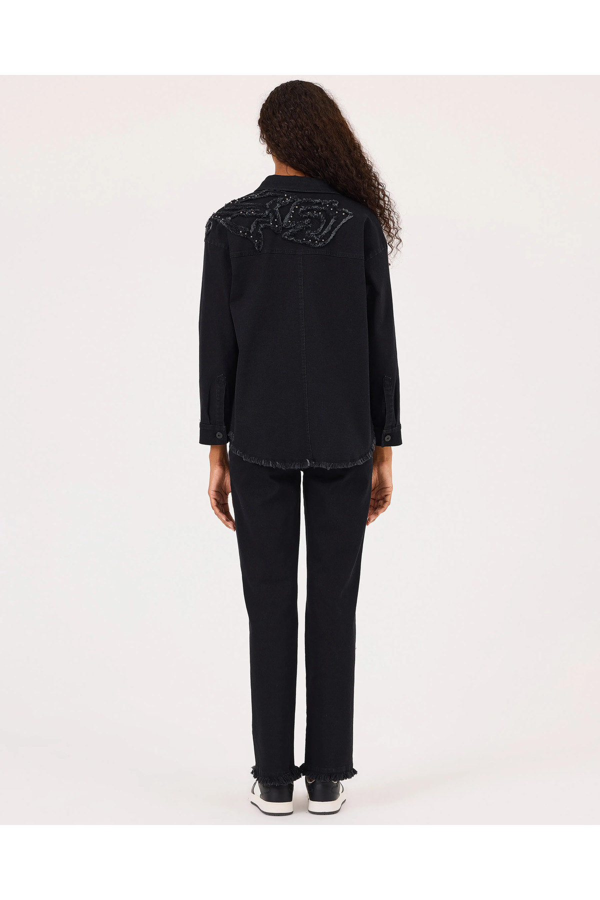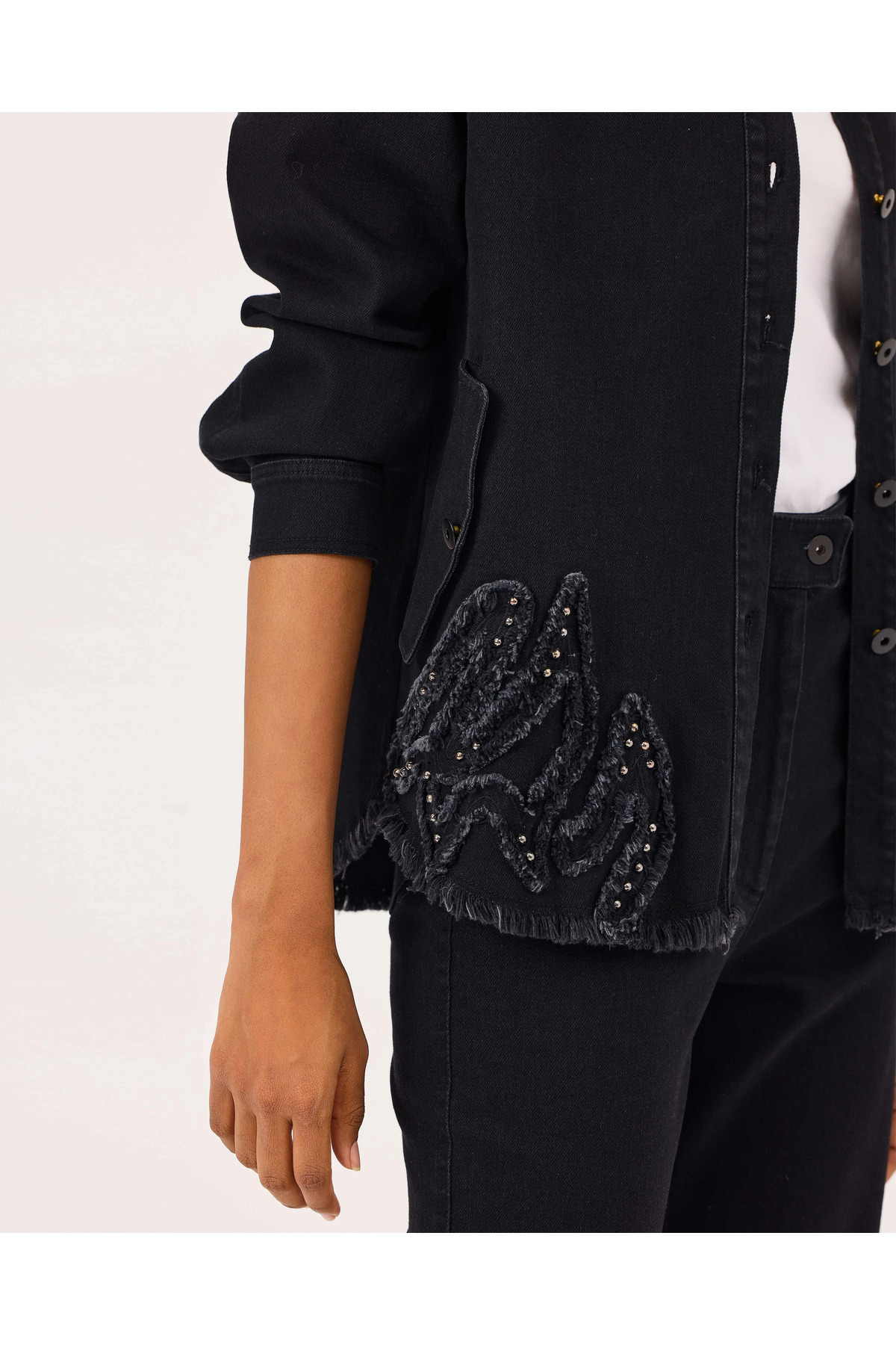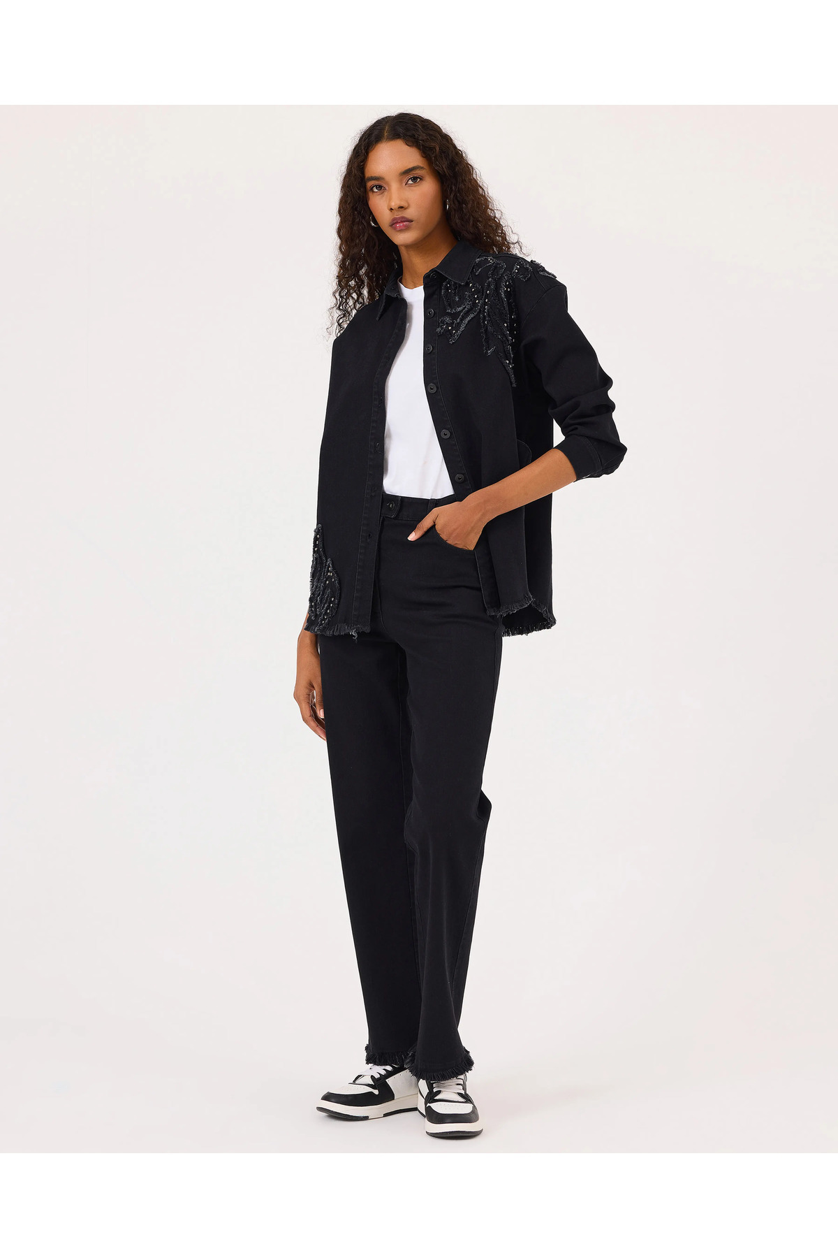 Nakışlı Boncuk Detaylı Düğmeli Jean Ceket Nakışlı Boncuk Detaylı Düğmeli Jean Ceket 10002422210001 42