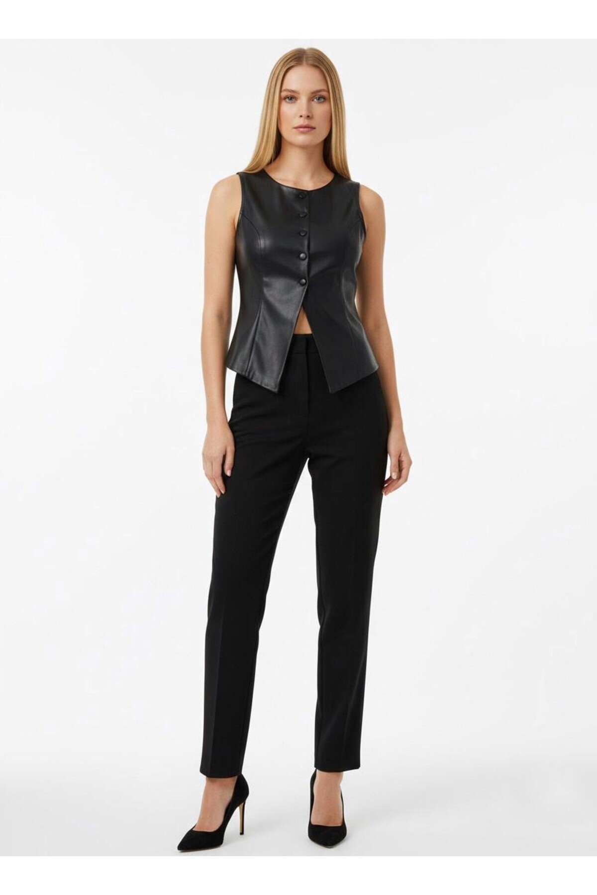 Klasik Kesim Suni Kalın Deri Düğmeli Asimetrik Yelek Gündüz&gece Şıklığı 15l4226 Klasik Kesim Suni Kalın Deri Düğmeli Asimetrik Yelek Gündüz&gece Şıklığı 15l4226 15L4226 42