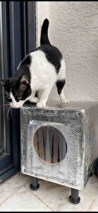 Ürünü bahçede baktığım 1 yaşında ortalama boyda kedi için aldım. Fotoğraflardan ebadını anlayabilirsiniz. Evdeki şişman kedim de içine sığabiliyor ama rahatça yaylanamaz derli toplu yatması gerekir. Toprağa dengesiz zemine koyacaksanız ayakların ayarlanabilir olması avantaj. Altı hariç yalıtımlı. Ben su almayan yerde tutacağım ama yağmurda alttan nem alabilir. Önündeki perde çok ince rüzgarda direkt uçuyor fikir güzel ama oraya daha kalın malzeme gerekiyor. Üstünün düz olması avantaj genelde orada oturarak zaman geçiriyor. Üstü çatı gibi olanları almayın hem gereksiz yere iç hacmi büyüyor ısıtmakta zorlanıyorlar hem de üstüne oturamıyorlar. Ürün yavrulu anne vs kalabalık için uygun değil ama tek bir kedi için ideal, iri olmayan iki kardeş de beraber yatabilir. Büyük yuva almayın içini ısıtamıyorlar. Genel olarak güzel, iyileştirilebilecek şeyleri üretici dikkate alırsa sevinirim.