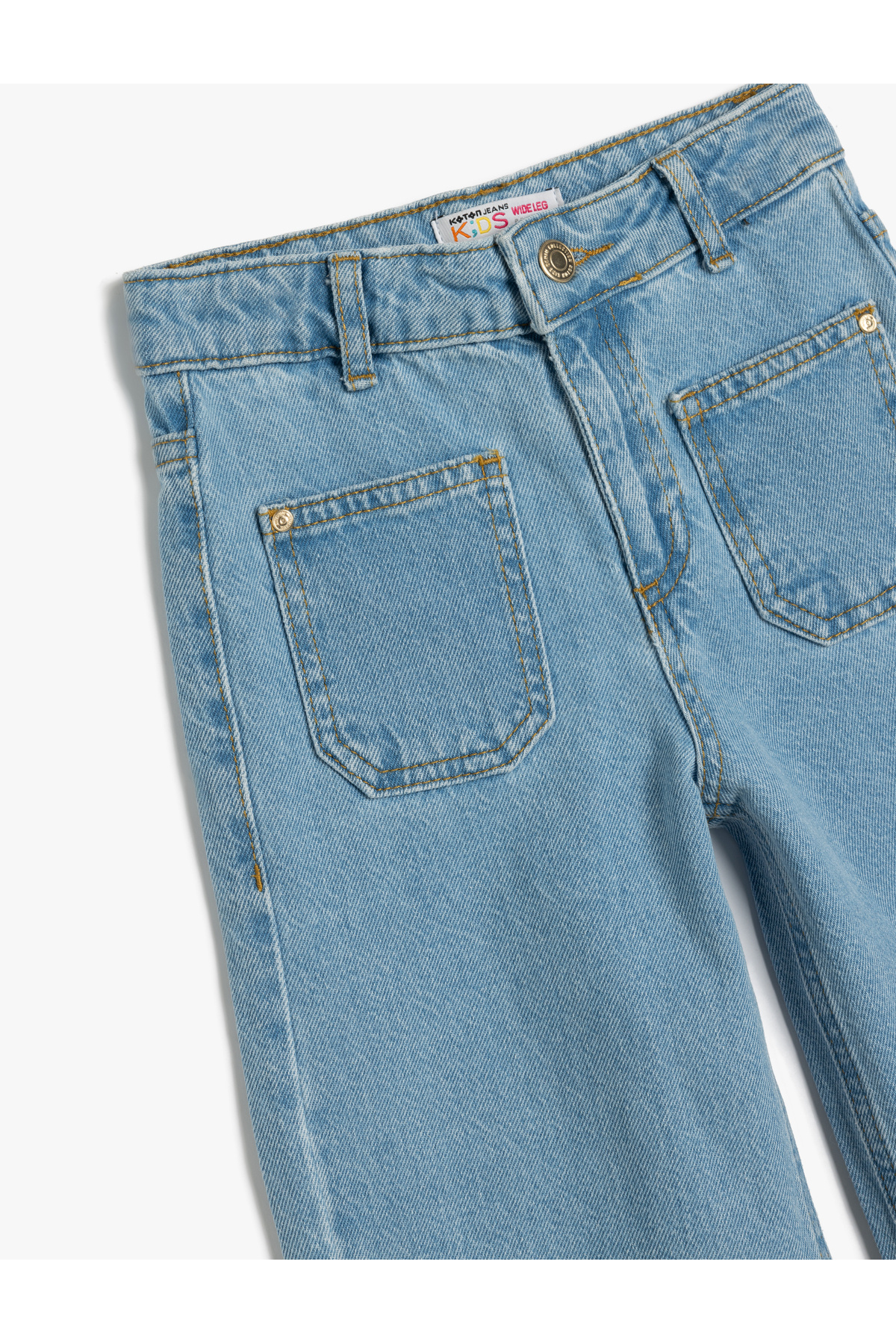 Kot Pantolon Geniş Paça Cepli Pamuklu - Wide Leg Jean Kot Pantolon Geniş Paça Cepli Pamuklu - Wide Leg Jean 5SKG40019AD Standart