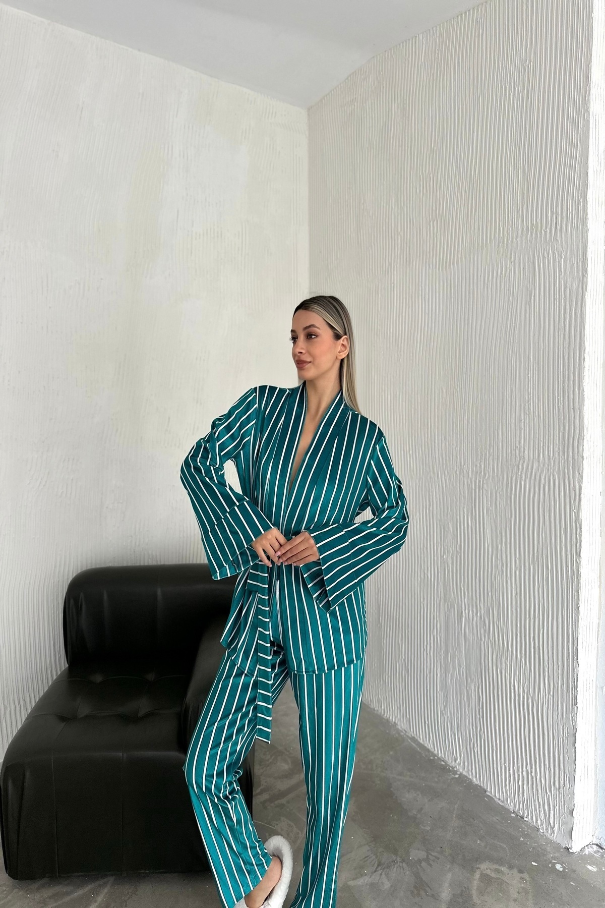 11498 Kadın Viscose Çizgili Gömlek Pantolon Pijama Takımı 11498 Kadın Viscose Çizgili Gömlek Pantolon Pijama Takımı MAN11498 XL