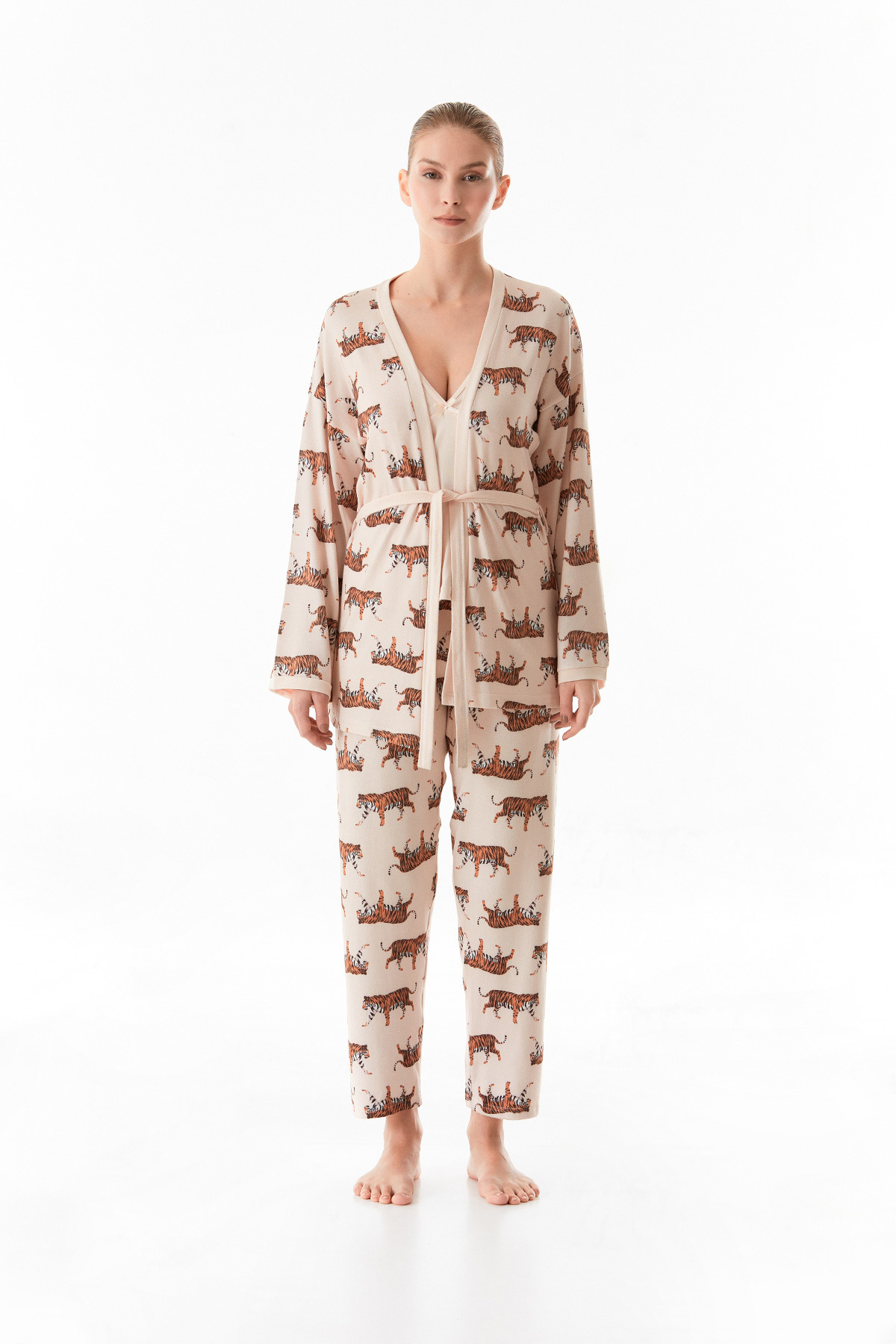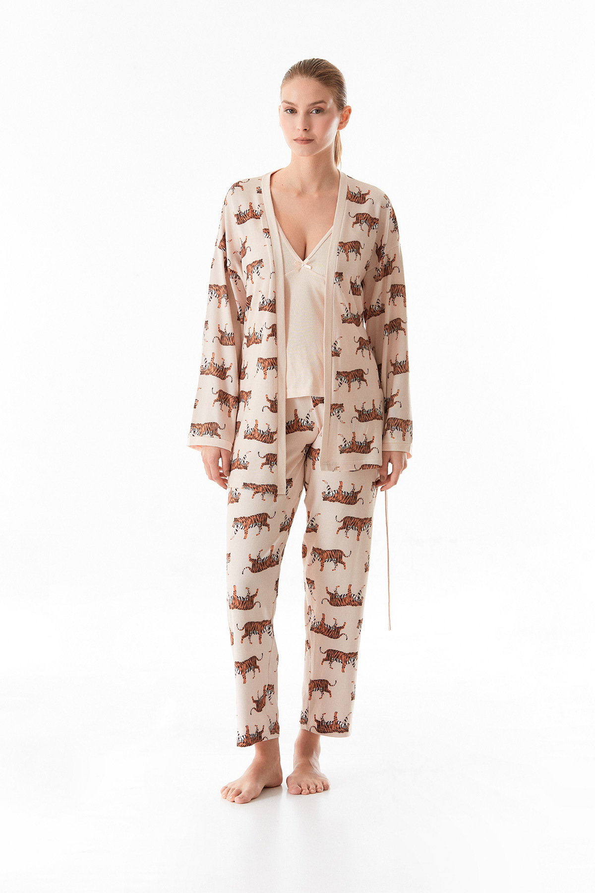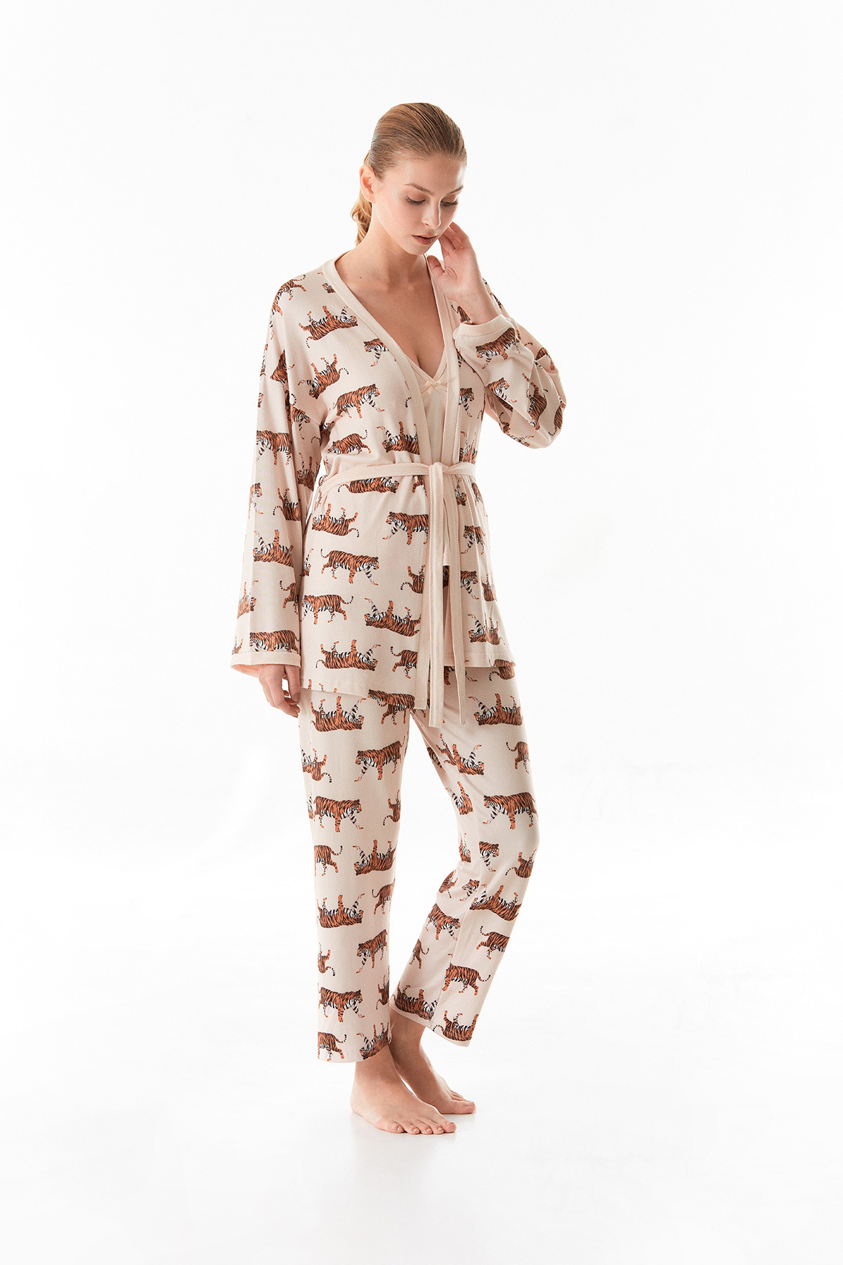 Kaplan Desenli V Yaka 3 Lü Pijama Takımı Kaplan Desenli V Yaka 3 Lü Pijama Takımı 24MICG631216523 2XL