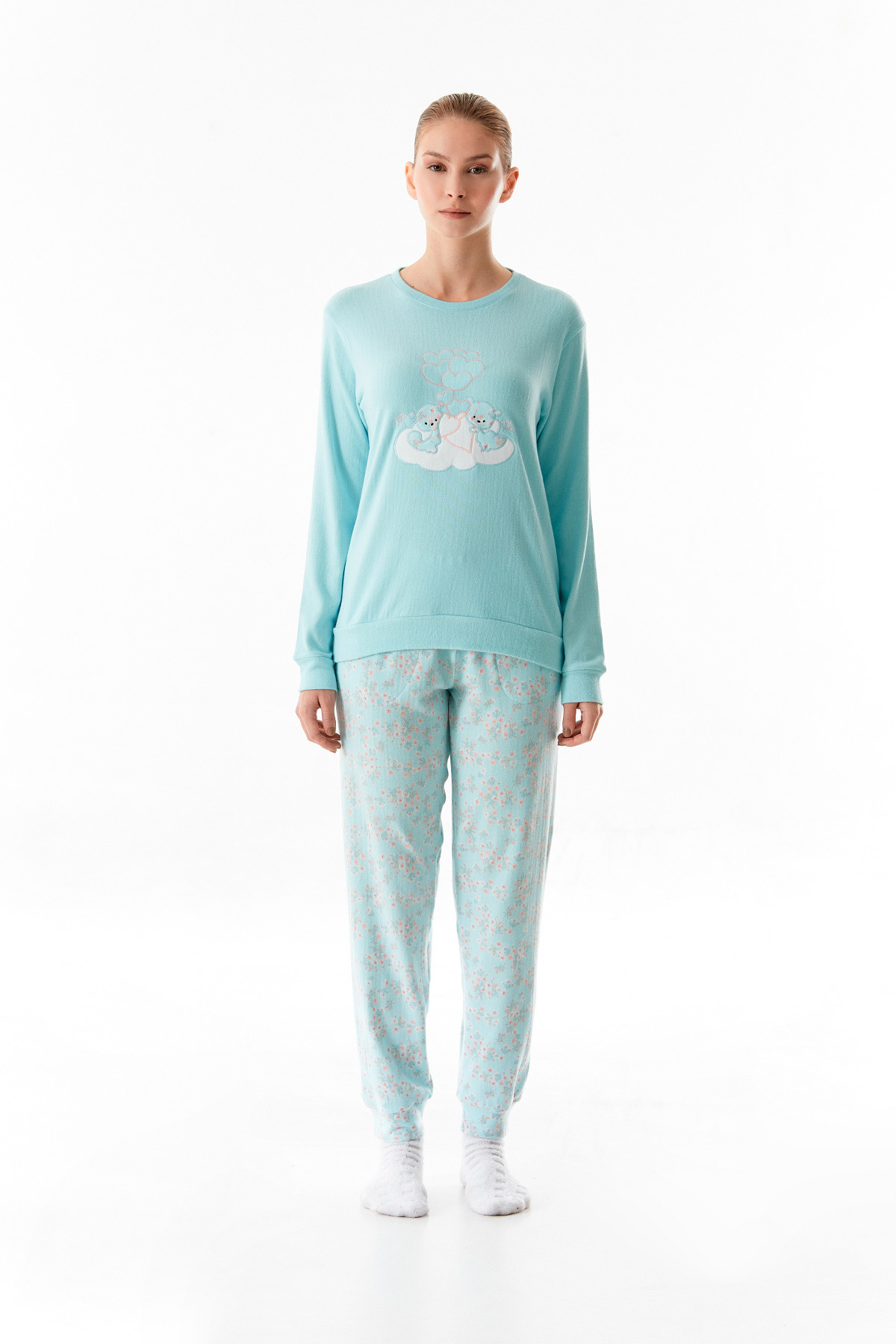 Ayıcık Nakışlı Bisiklet Yaka 2 Li Pijama Takımı Ayıcık Nakışlı Bisiklet Yaka 2 Li Pijama Takımı 24MICG631125723 XL