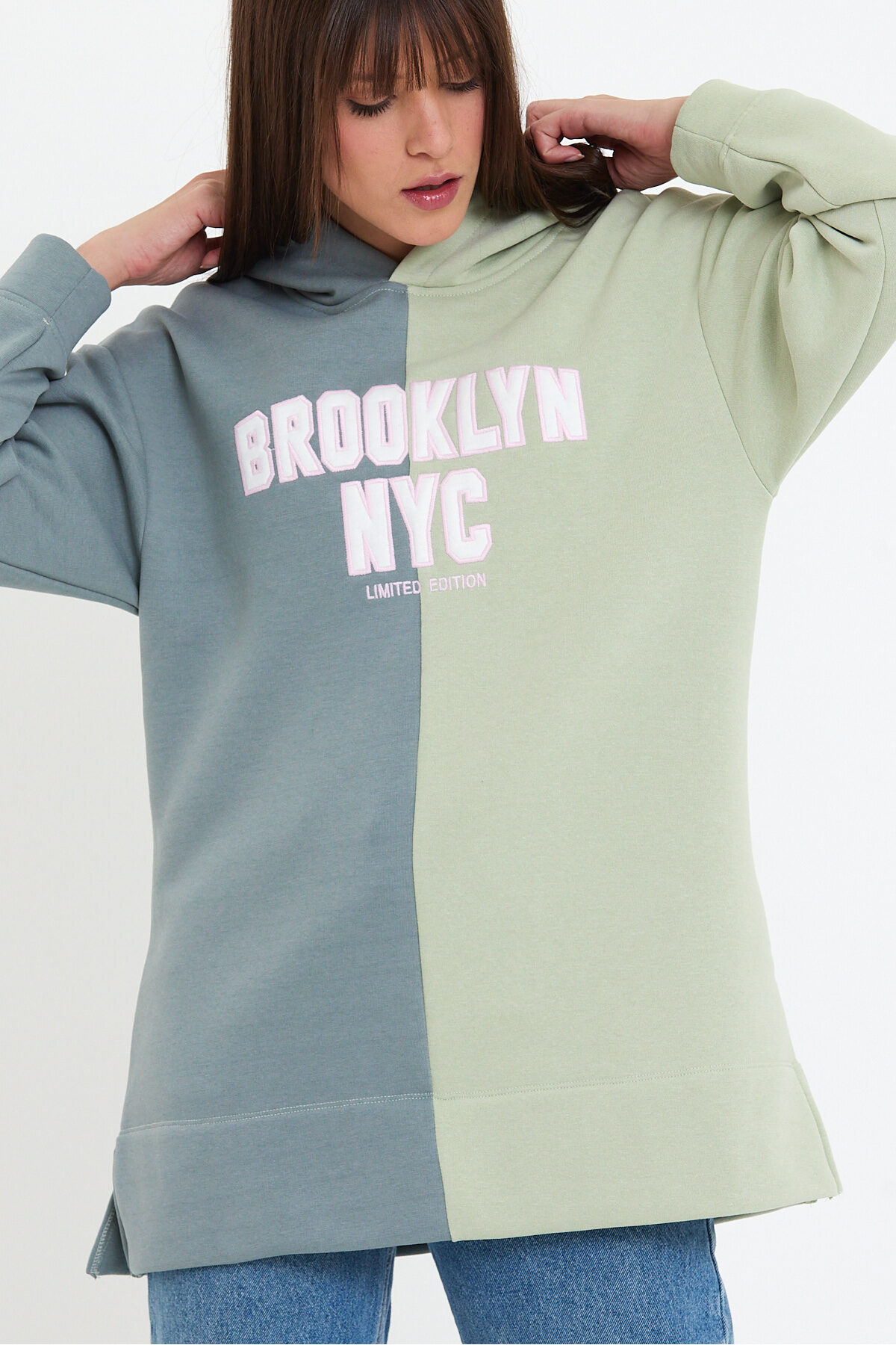 Haki Kapüşonlu Eteği Yırtmaçlı Sweatshirt Haki Kapüşonlu Eteği Yırtmaçlı Sweatshirt DAB202411291 L