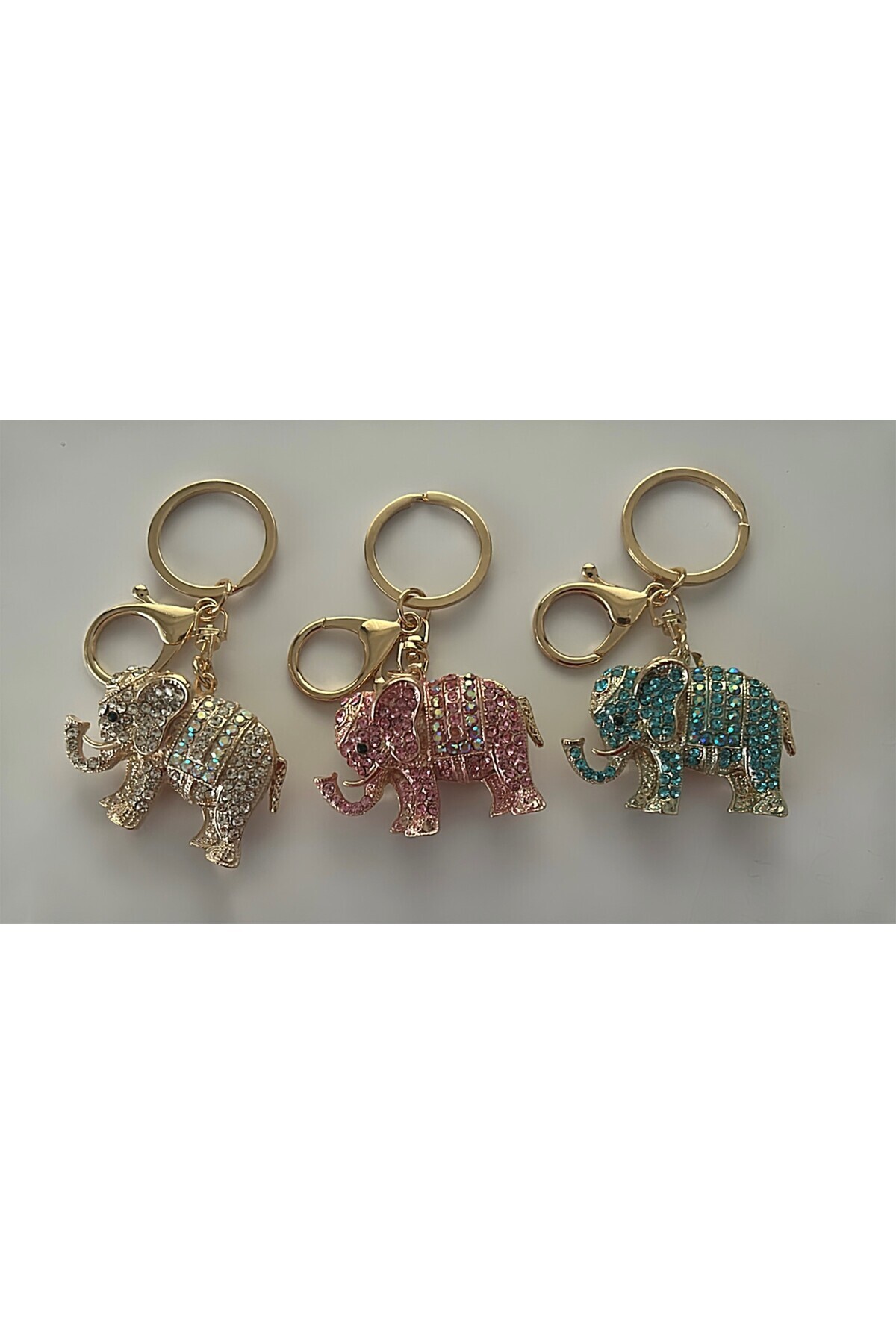 Kristal Yapay Elmas Taşlı Fil Model Ev,Araba Metal Kafesli Anahtarlık ve Çanta Aksesuarı BY703