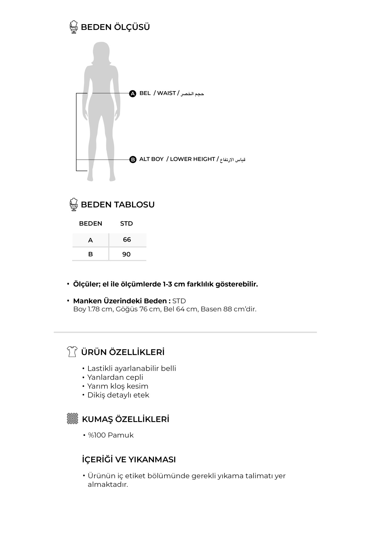 - Yıkama Talimatı : Type 1