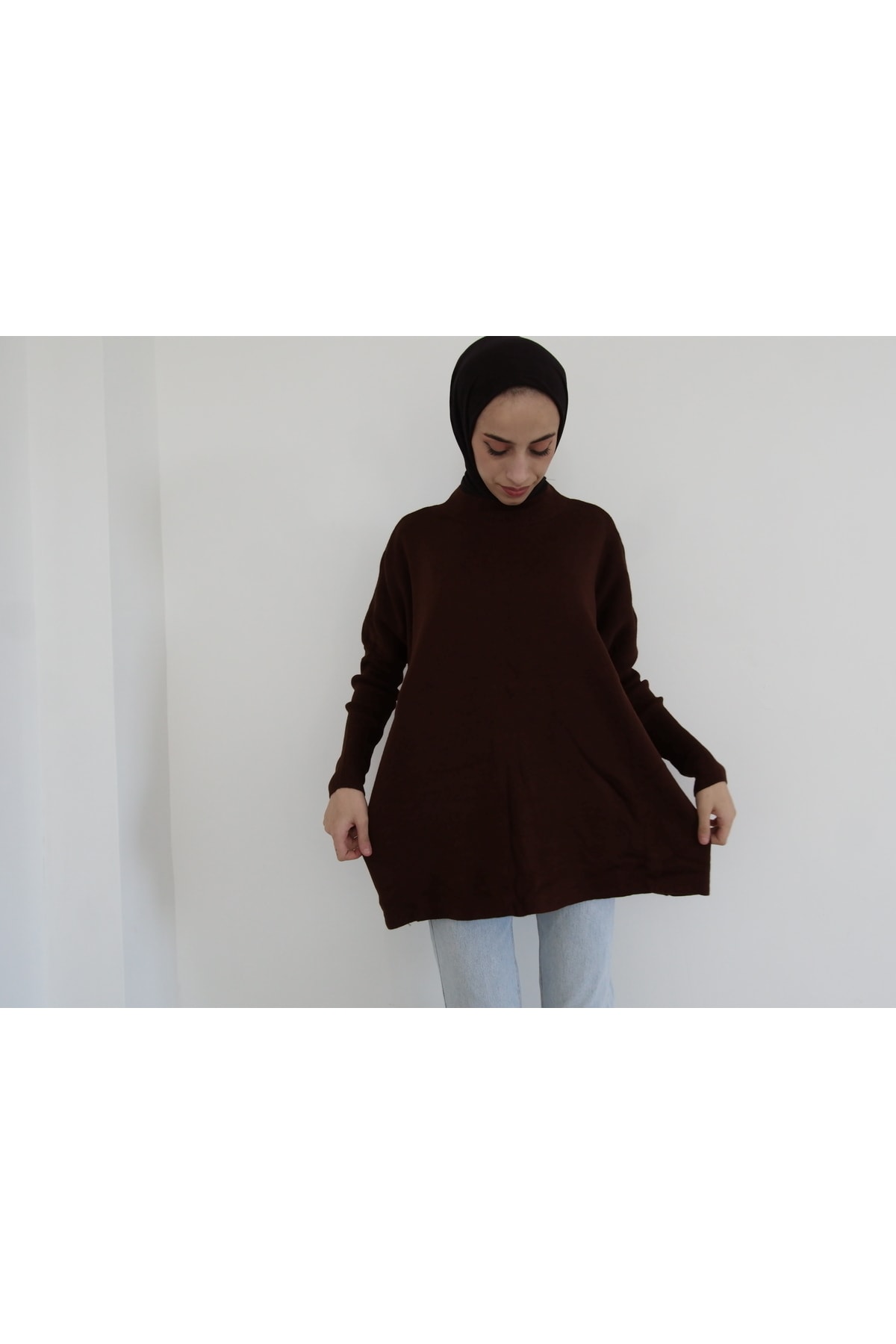 Geniş Yaka Detaylı Fermuarlı Çelik Triko Tunik Boy Kazak Geniş Yaka Detaylı Fermuarlı Çelik Triko Tunik Boy Kazak 10 Standart