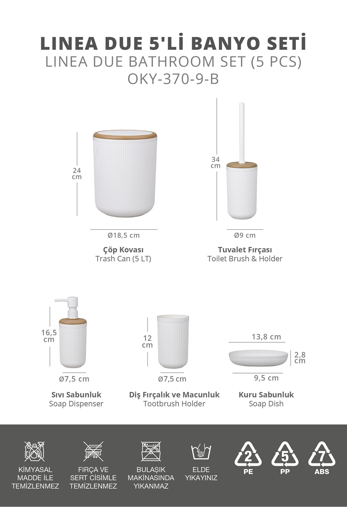 Linea Due Kırık Beyaz Çizgili Yuvarlak 5'li Banyo Seti Linea Due Kırık Beyaz Çizgili Yuvarlak 5'li Banyo Seti OKY-430-9 تک سایز