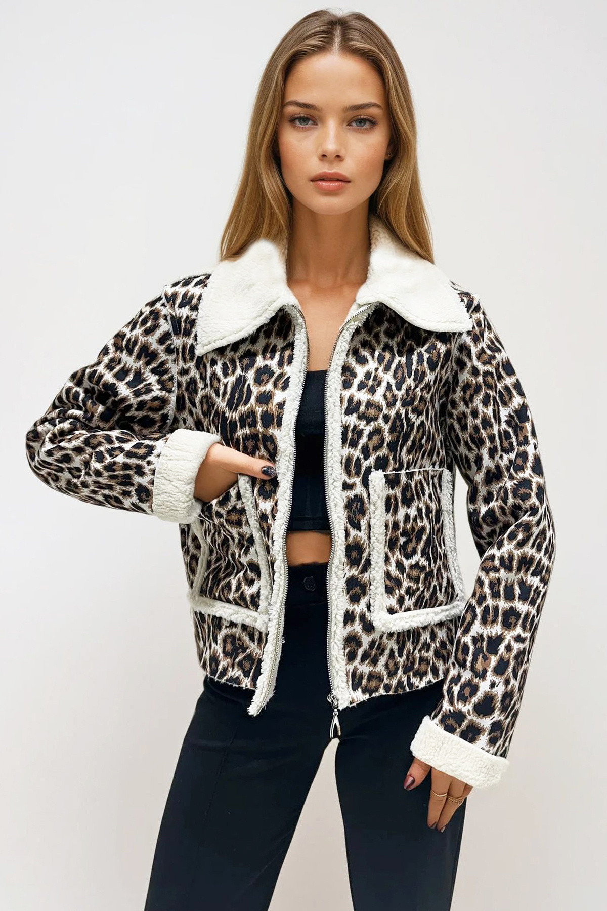 Kadın Leopar Çift Cepli İçi Suni Kürklü Suni Deri Biker Ceket Prm0408 Kadın Leopar Çift Cepli İçi Suni Kürklü Suni Deri Biker Ceket Prm0408 PRM0408 L